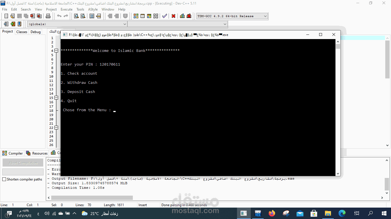 أقدم لكم صور توضيحية عن برمجة نظام يحاكي عمل البنوك بلغة C++ باستخدام برنامج Dev c++