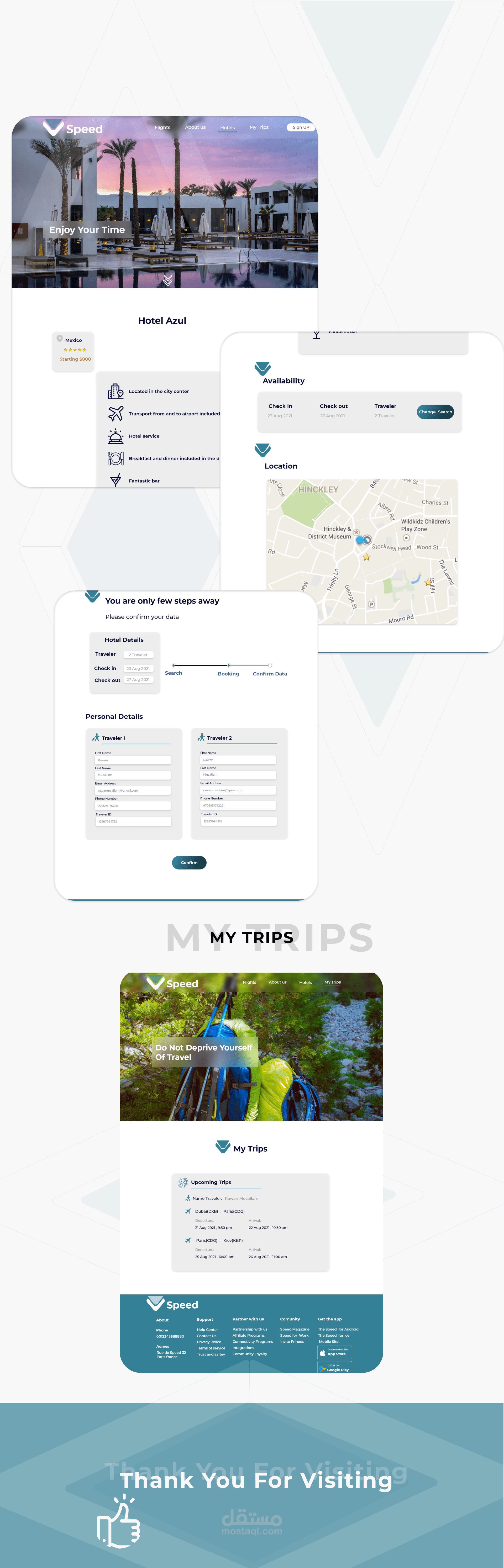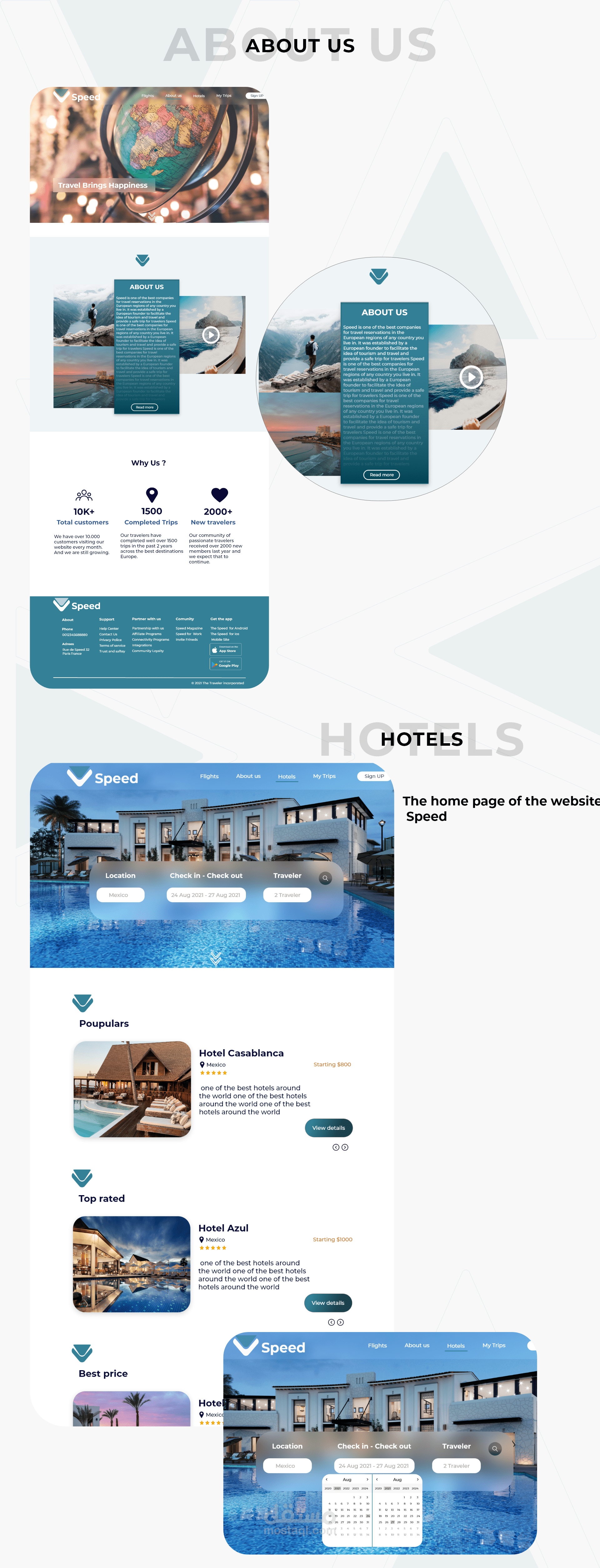 تسهيل التسجيل لرحلات السفر من خلال موقع Speed. يحدد المسافر البلد الذي يتجه إليه ويختار عدد الركاب وما إذا كان سيذهب ويعود إلى نفس المنطقة أو رحلات متعددة ، ويوفر الموقع للمسافر خيارات من البلدان التي يسافر إليها معظم الأشخاص. يتيح الموقع للمسافر إمكانية اختيار الفندق المناسب له حسب المنطقة وحسب توفره من الأشهر أو أعلى سعر وتوافر الفنادق حسب عدد المسافرين ويظهر أسعارها قبل الحجز. يهتم الموقع بتوضيح خدمات الفندق الذي سيتم الحجز فيه.