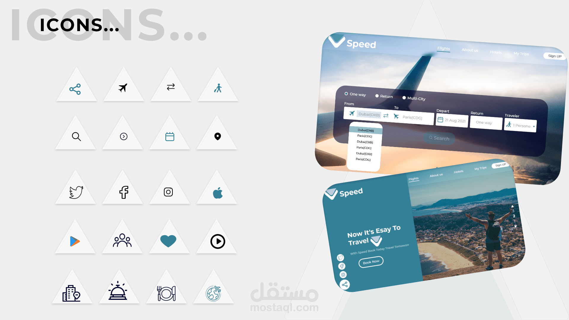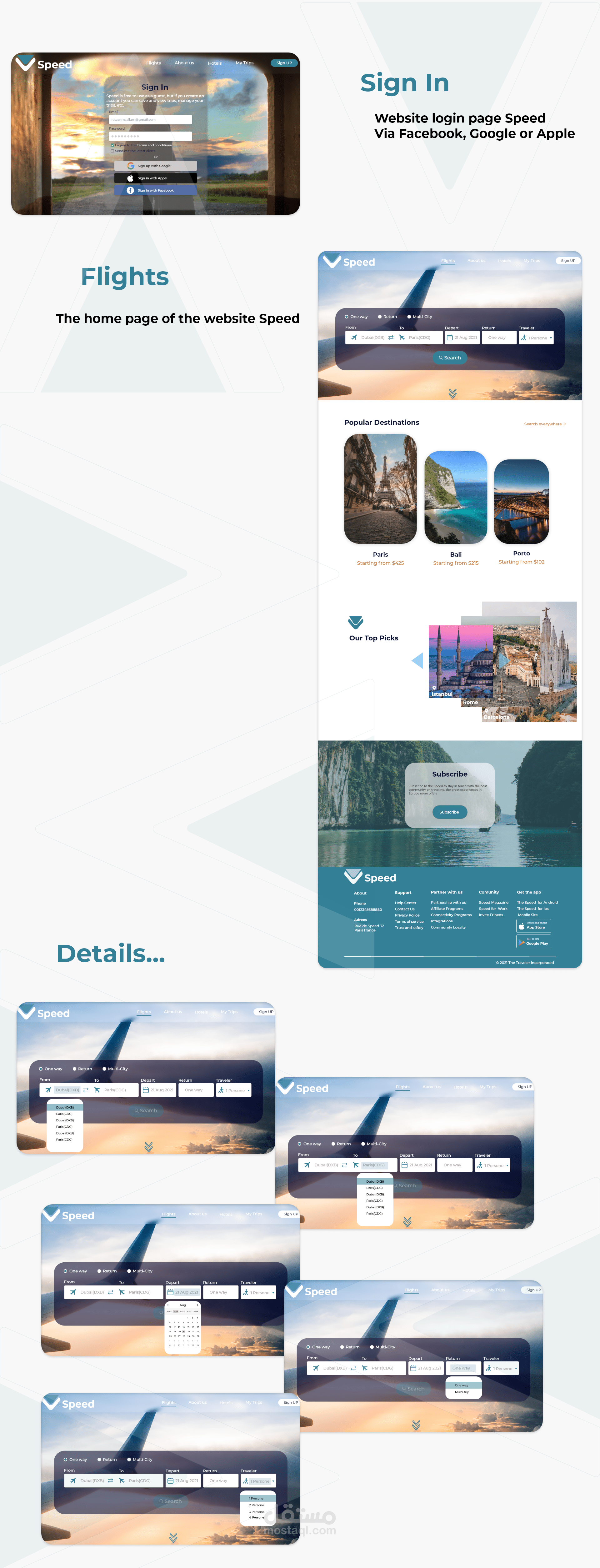 تصميم UI / UX لموقع الويب لحجز تذاكر طيران والفنادق.
