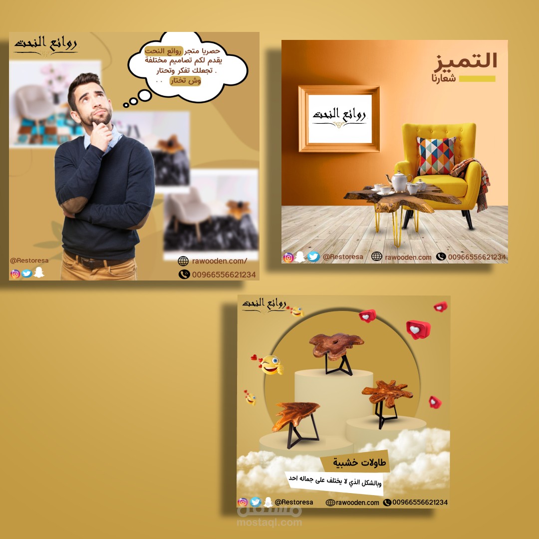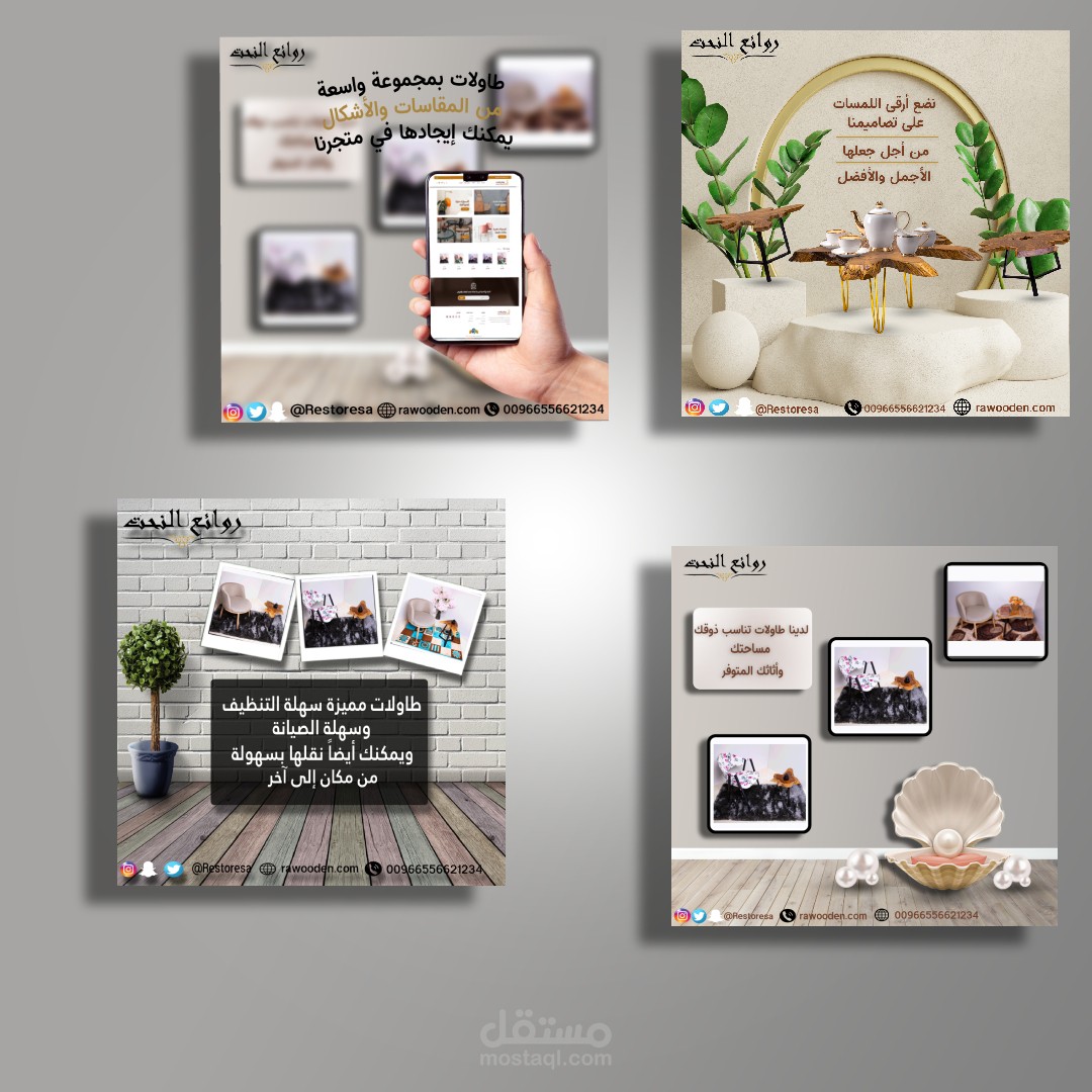 مشروع لمتجر يملك طاولات واكسسورات نحت