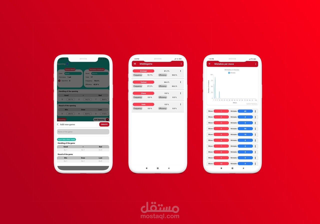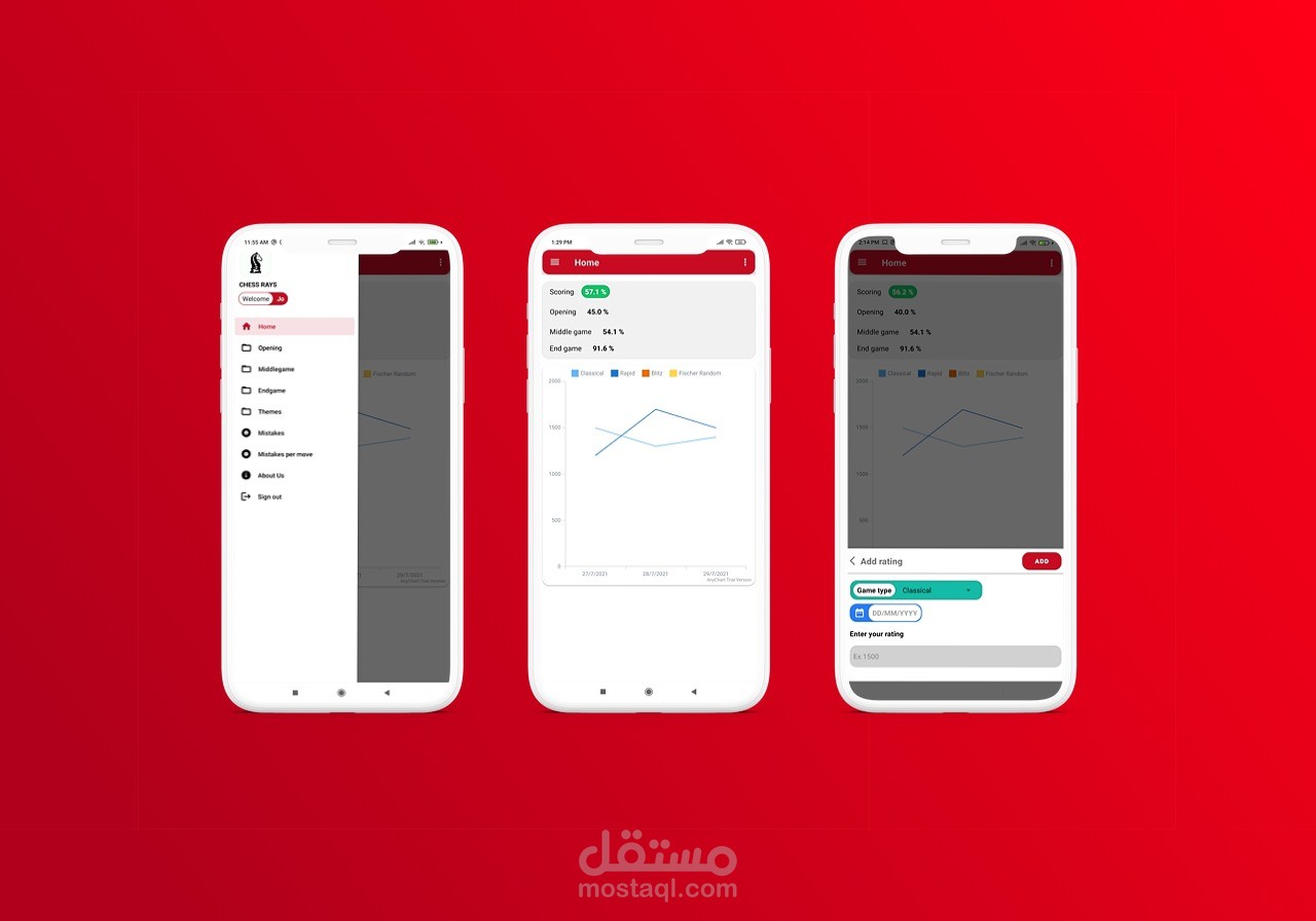 Chess Rayes, it's an android app for a chess club, I built it for a client on this platform, The app allows the trainees or the trainers to analytic of the training. The app includes a graph that accurately shows the progress of the trainee and calculates his efficiency, error rate, frequency ratio, and many calculations are necessary to show the progress of the trainees. The application includes six sections, which are the opening game and the middle game, the final game, errors and errors in every step, and Themes, and your data stored on the Firerbies, so you cannot lose it. Just create an account for free and enjoy the application.