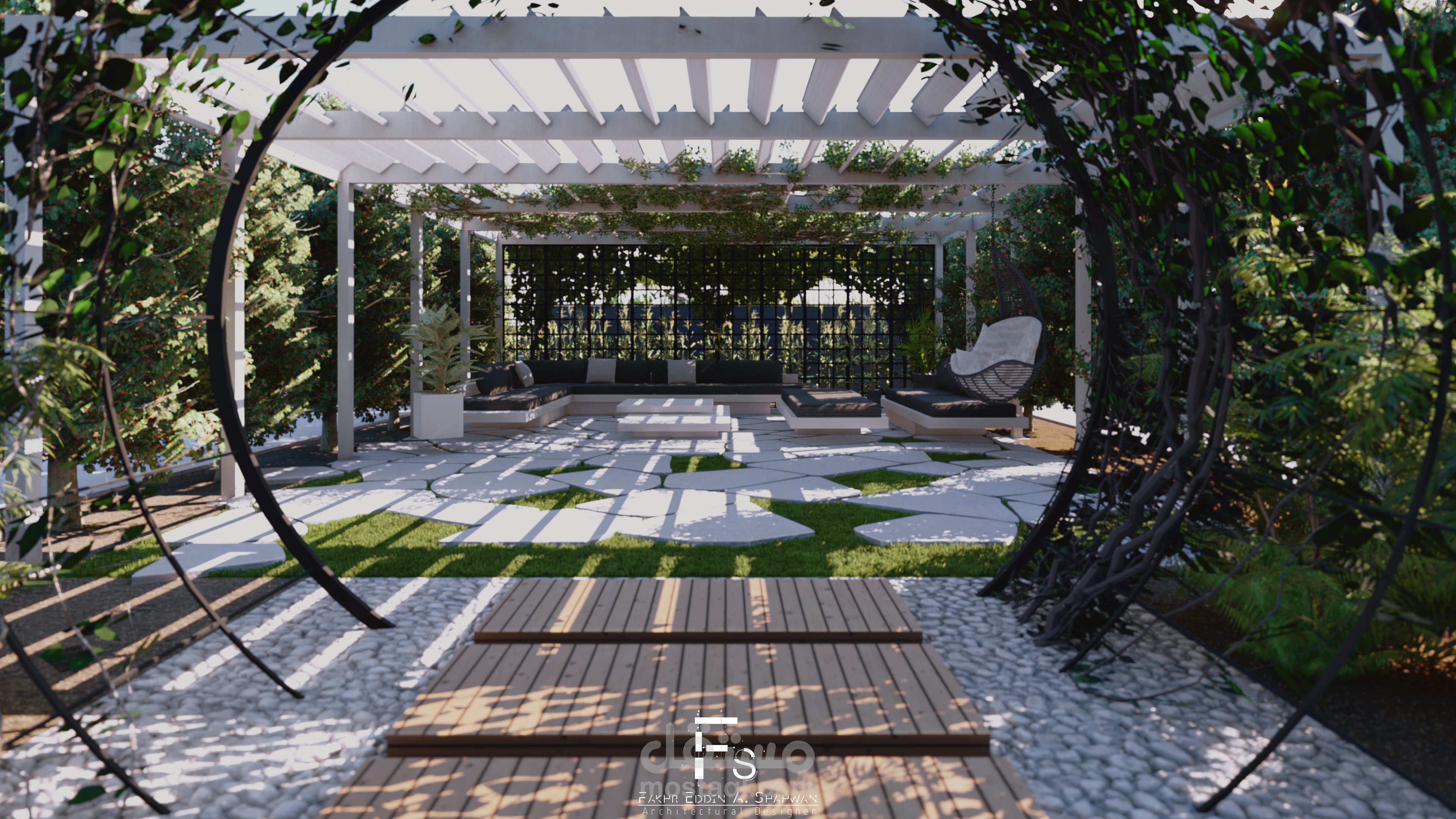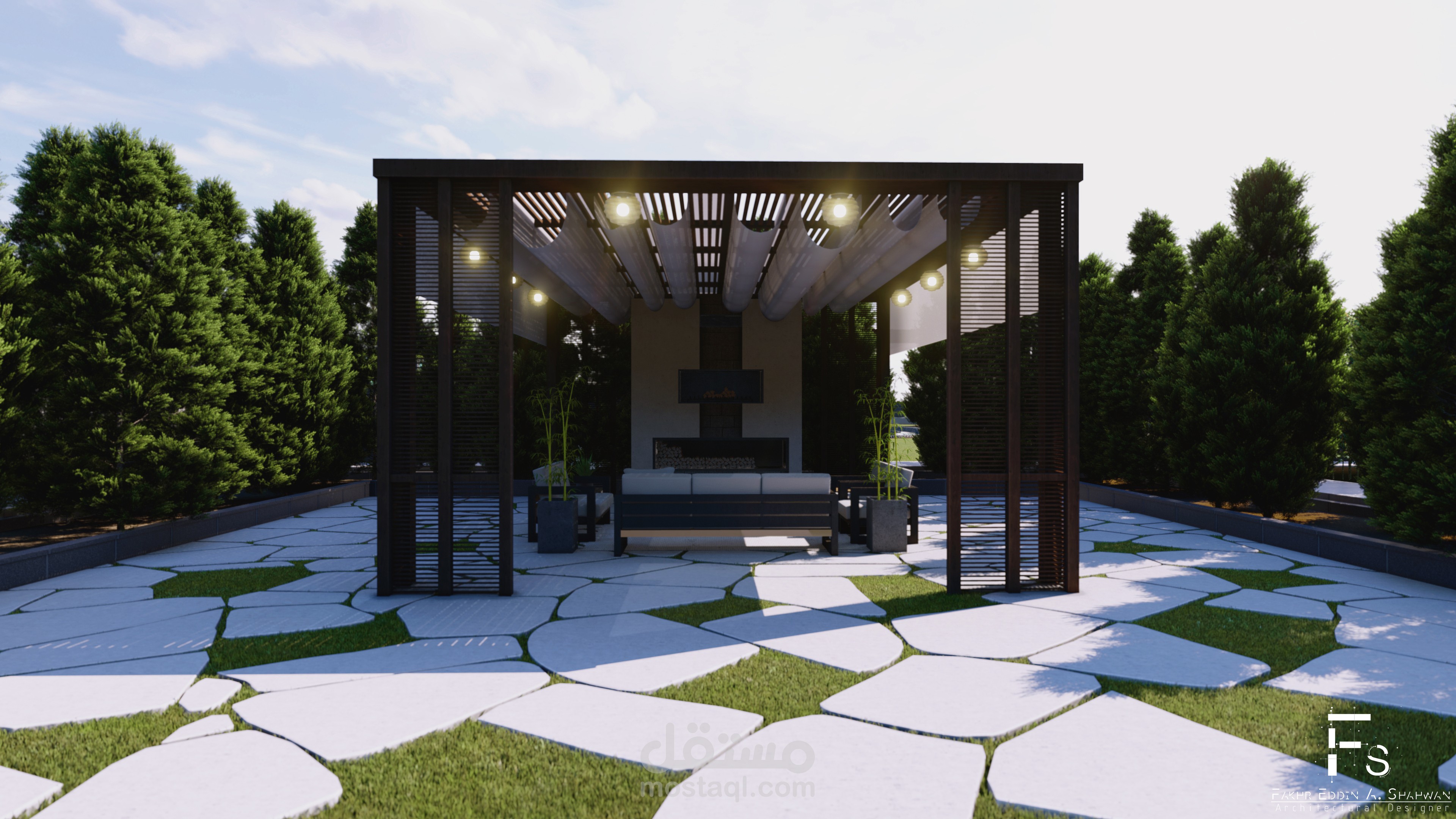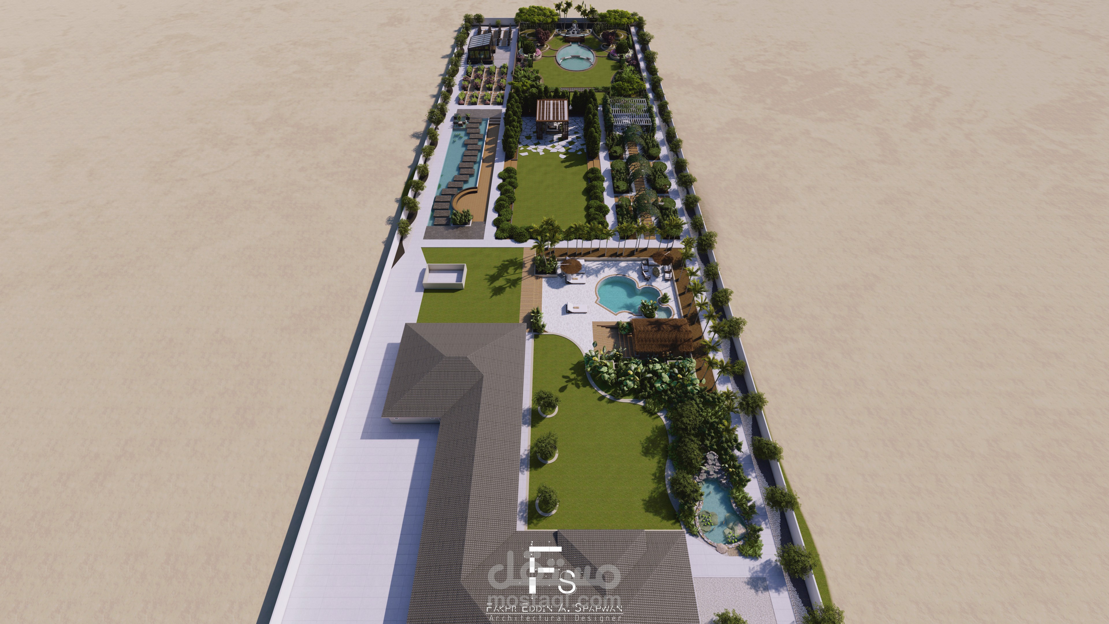 تصميم حديقة منزل لعميل مقسمة الى عدة فراغات و استعمالات متنوعة