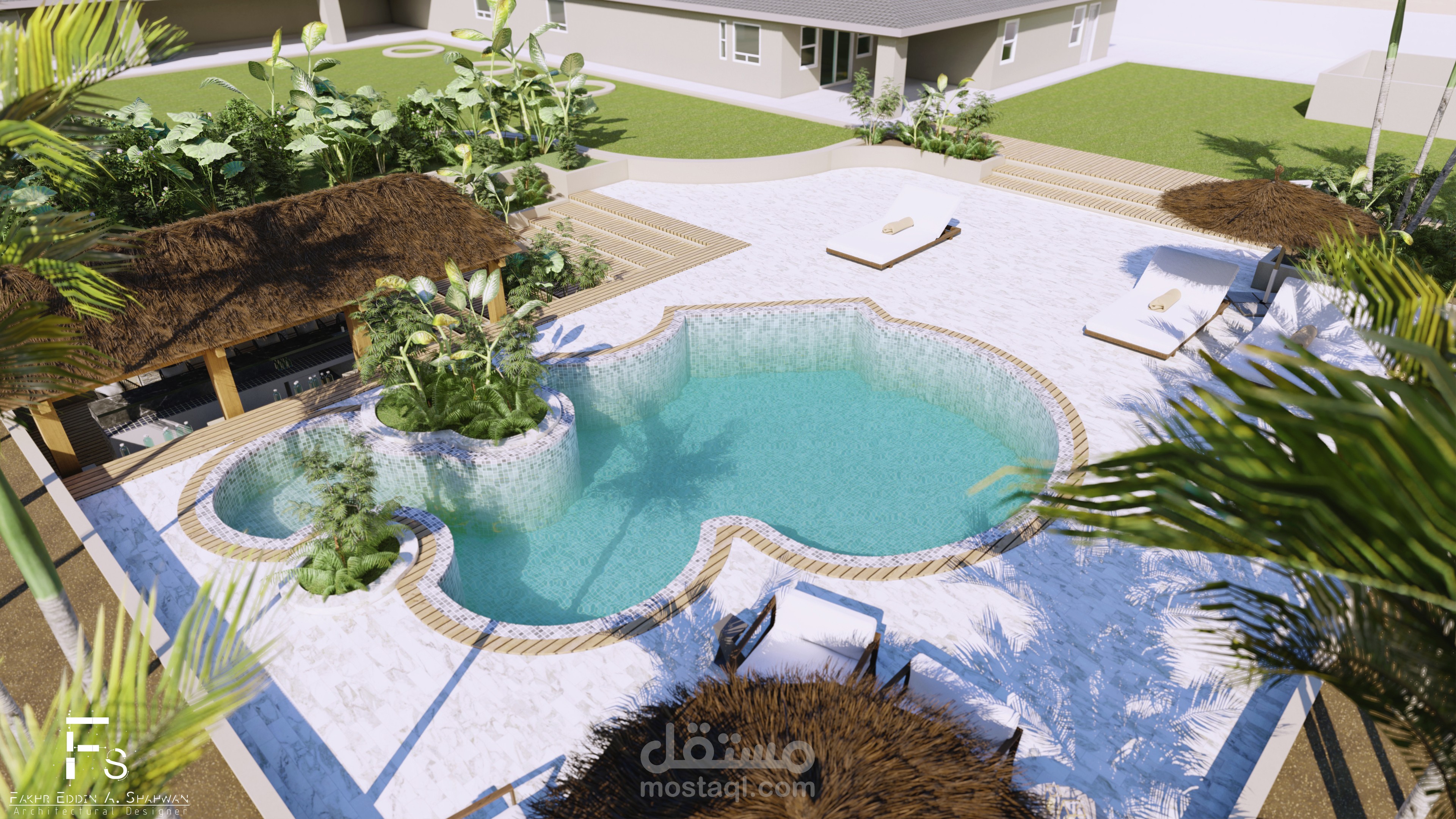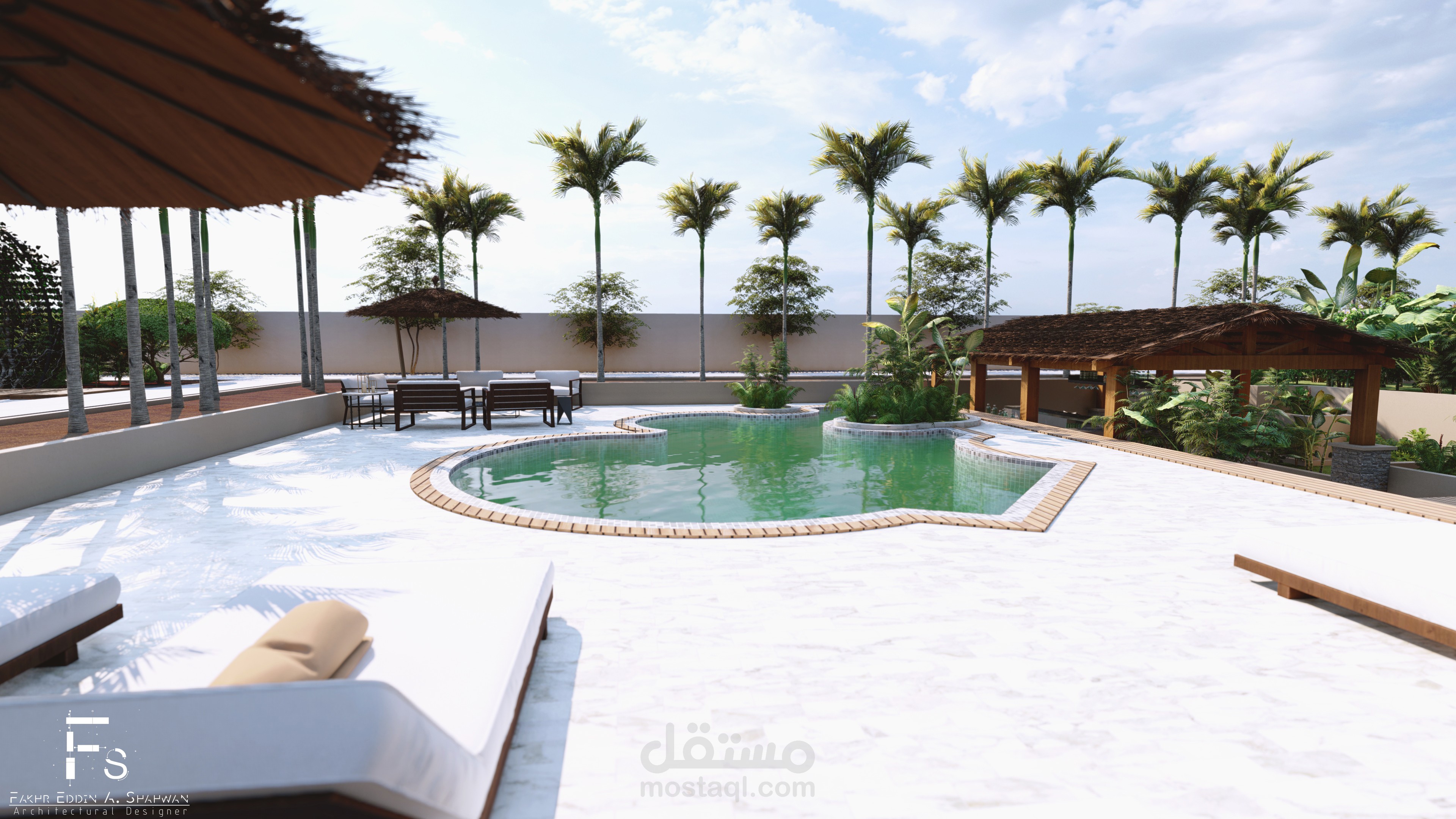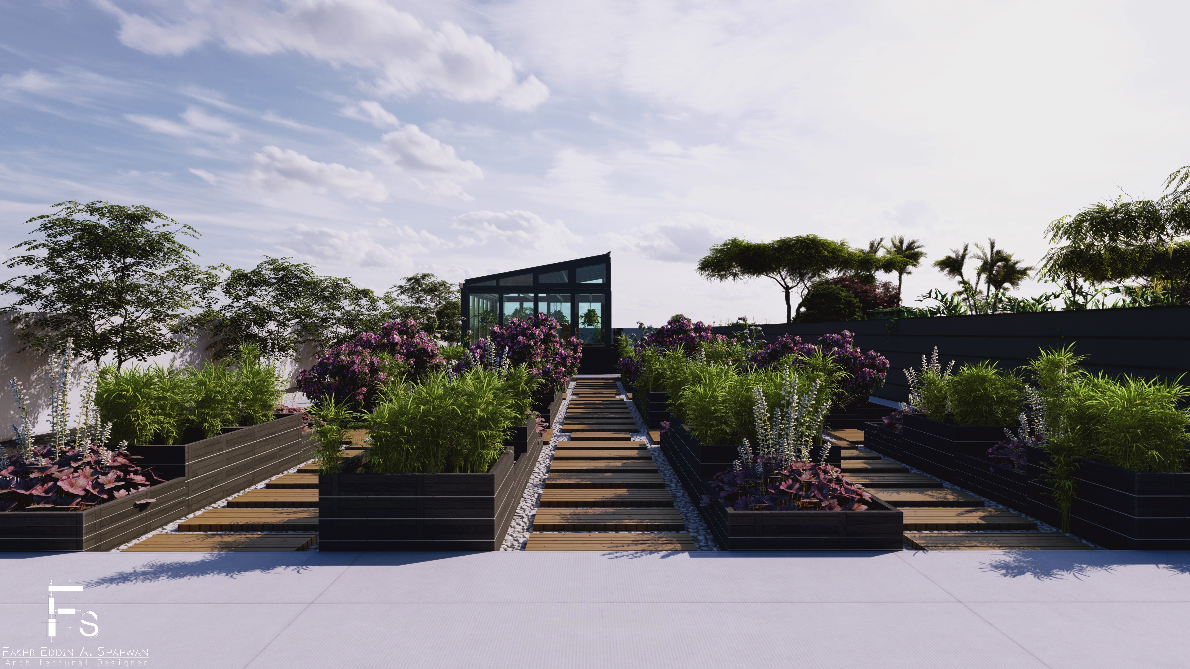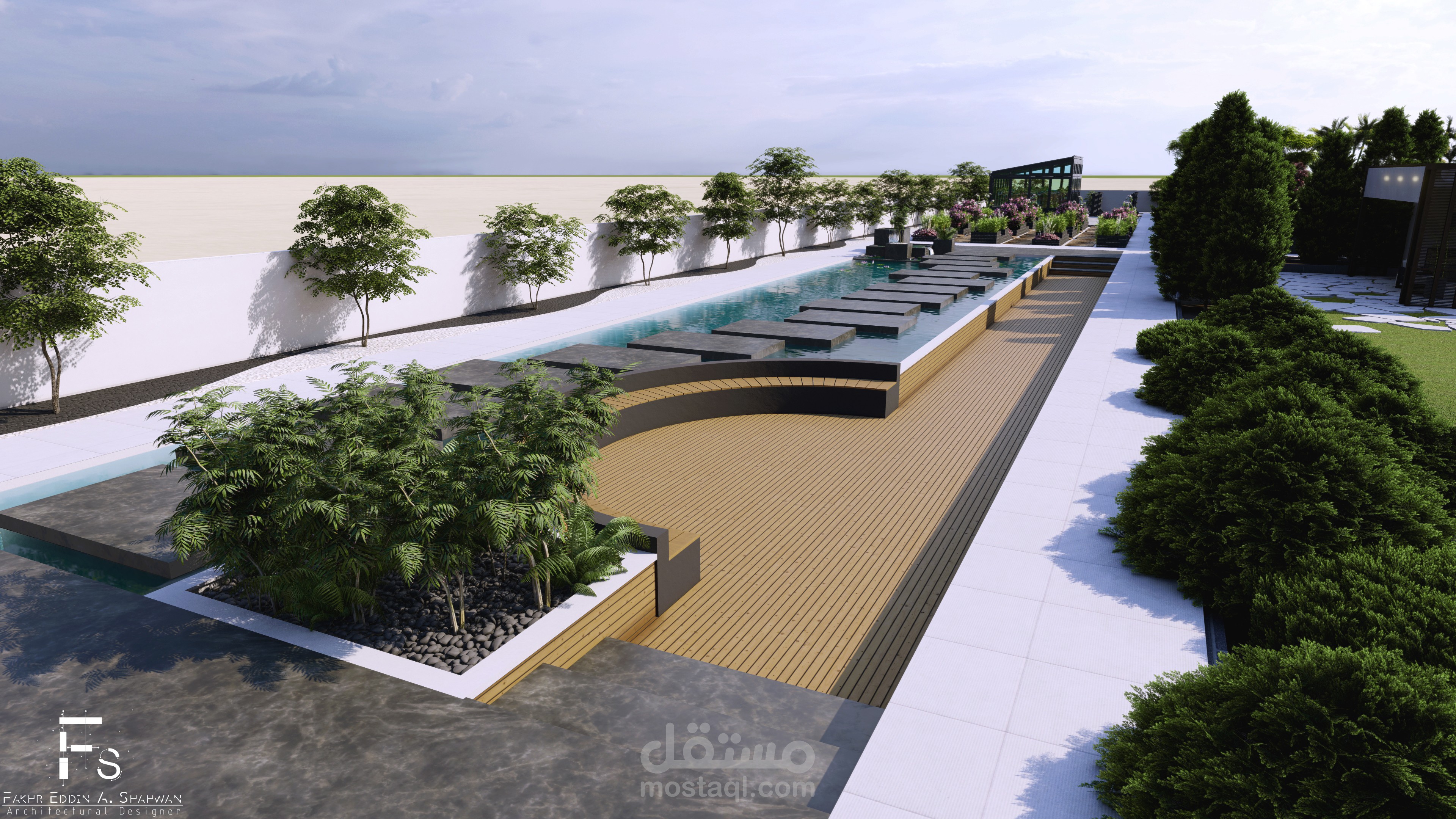 تصميم حديقة منزل لعميل مقسمة الى عدة فراغات و استعمالات متنوعة