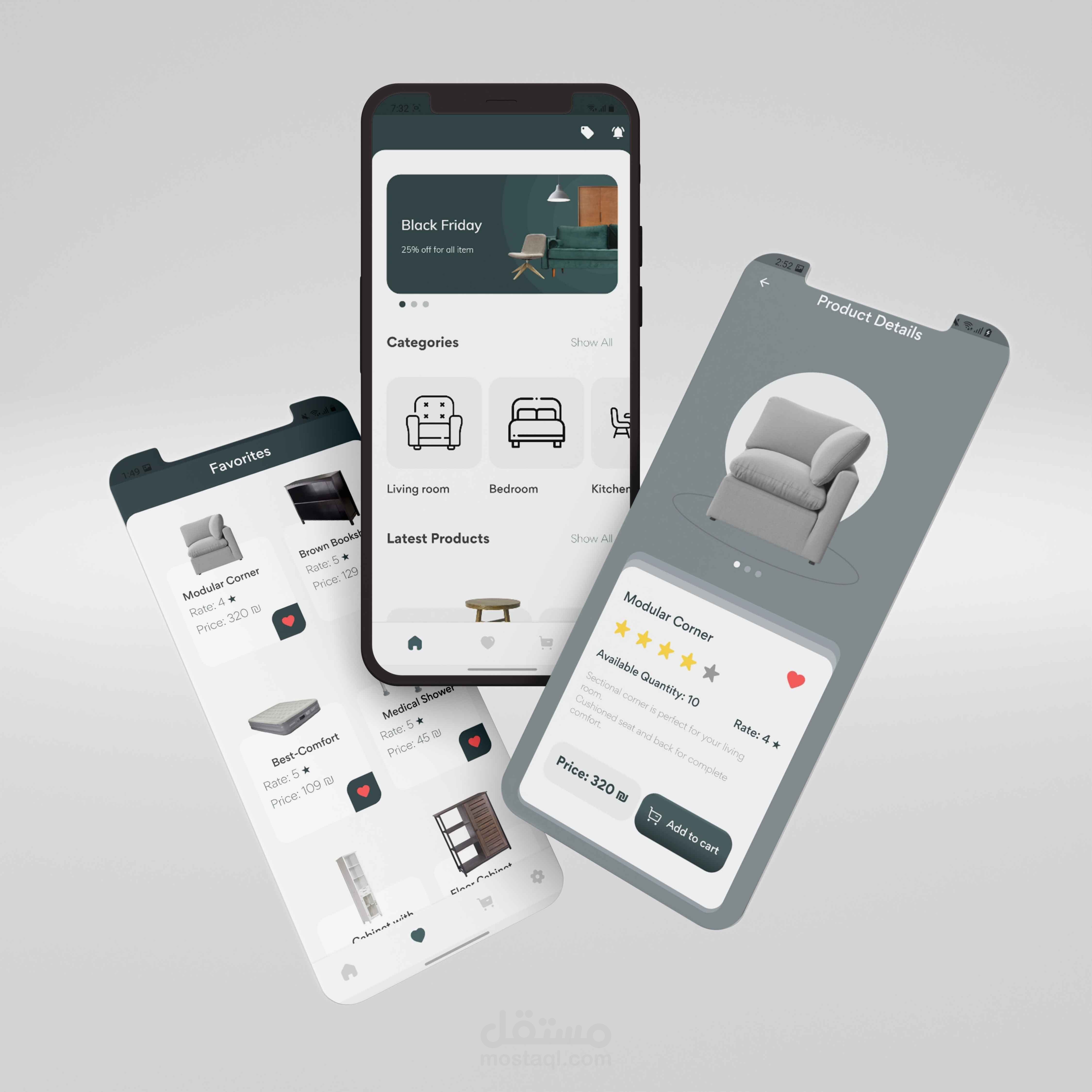 التطبيق عبارة عن متجر للأثاث. يقوم بعرض الأثاث وأسعاره وتفاصيل حوله، ويحتوي على الإشعارات والعروض. أيضَا هنالك قائمة المفضلات، ويمكنك إضافة السلع إلى السلّة لتقوم بشرائها فيم بعد.