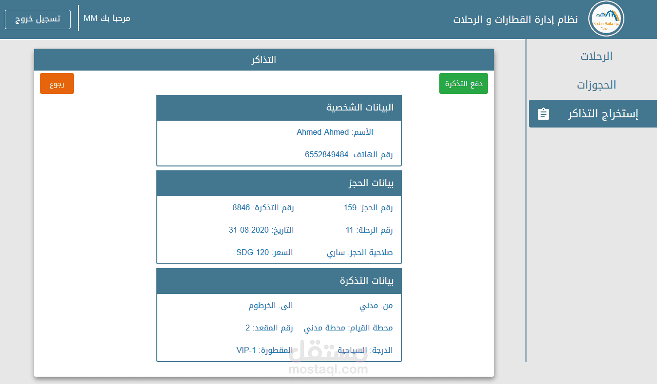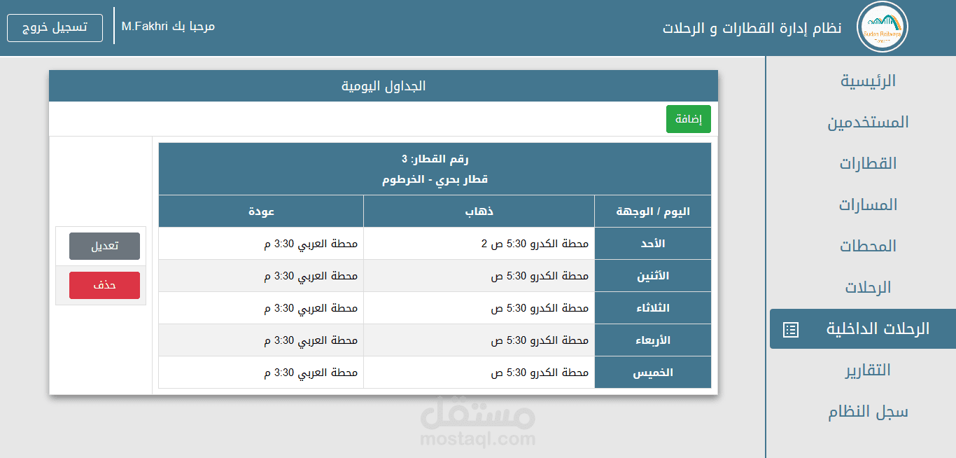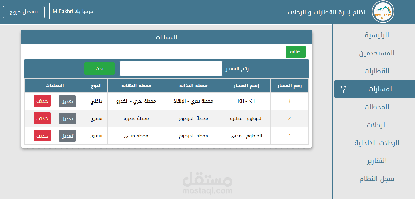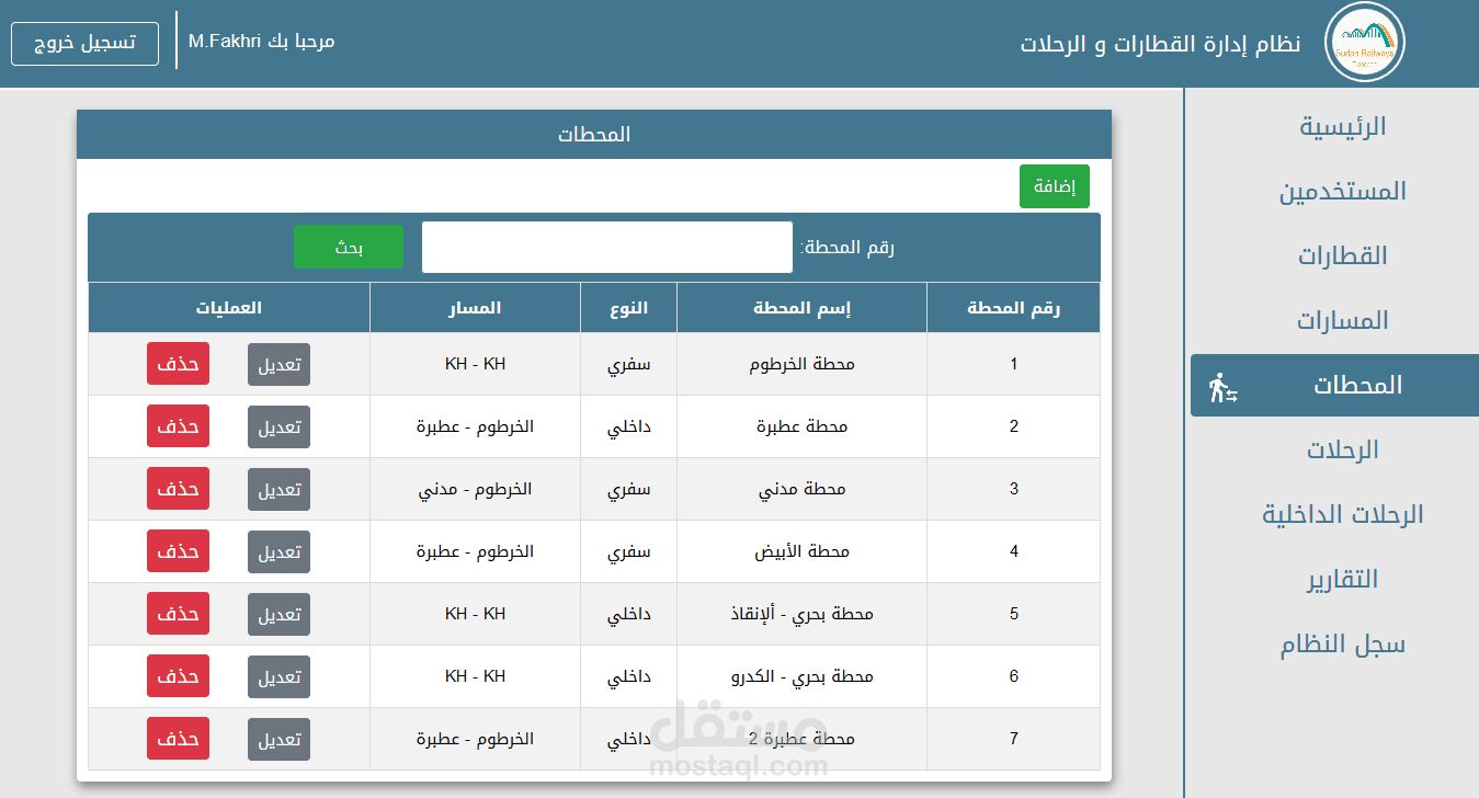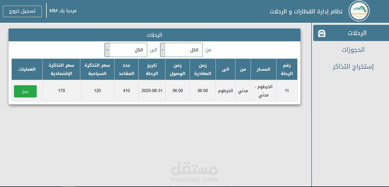 نظام ادارة القطارات والرحلات يحتوي على اضافة وحذف وتعديل للموظفين والعملاء.. القطارات..المسارات..المحطات ..الرحلات..الحجوزات