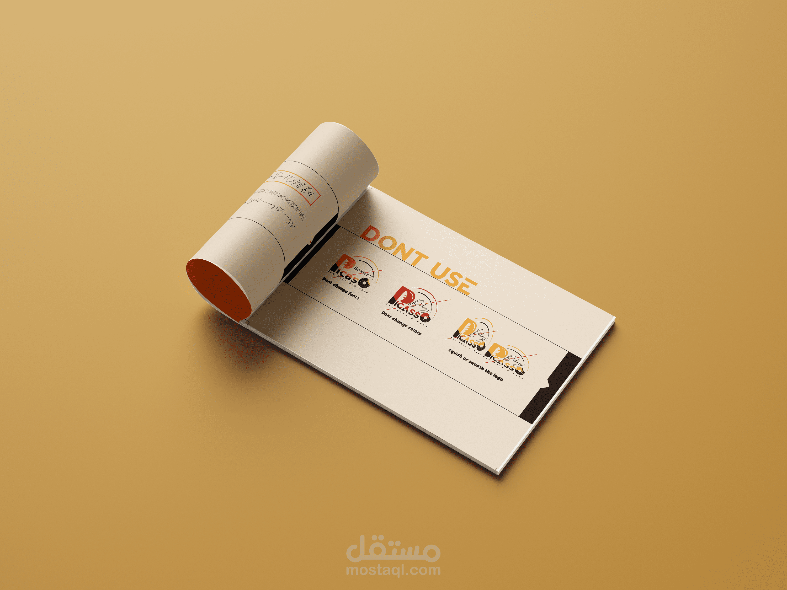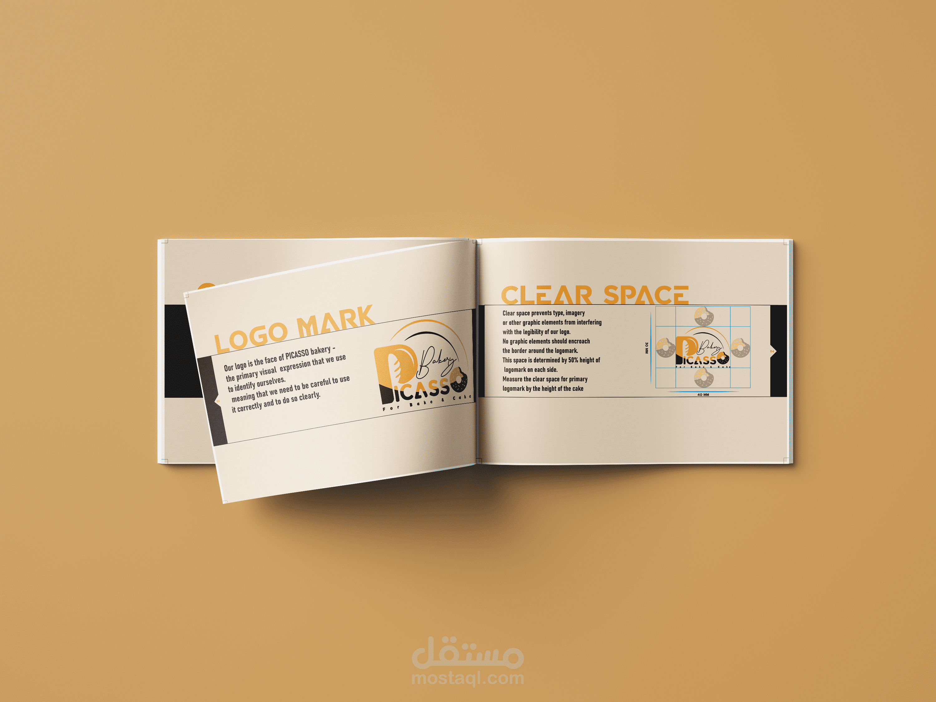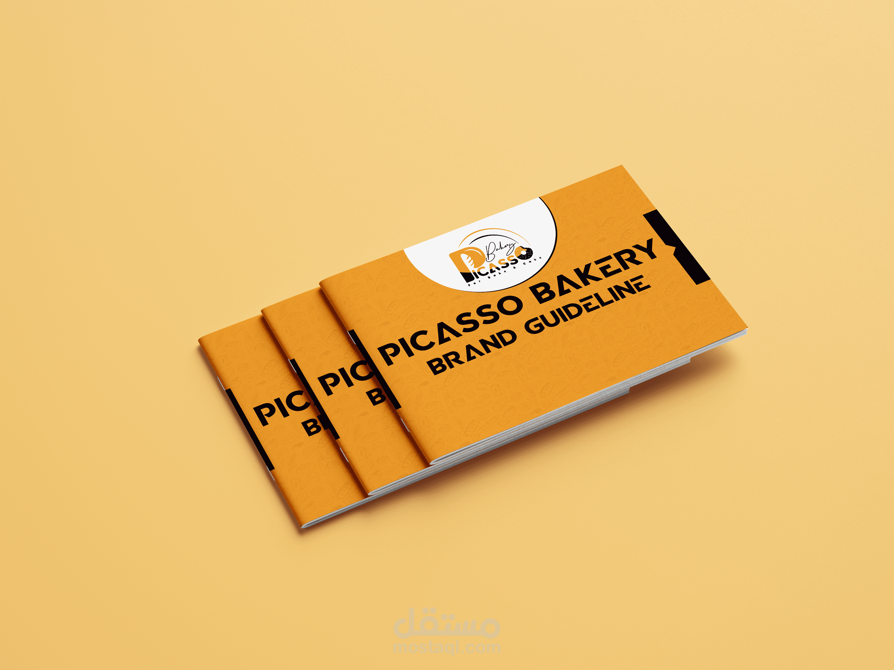 تصميم دفتر مواصفات لتصميم شعار مخبز بيكاسو للمعجنات والكيك يوضح اهم المواصفات لهذا الشعار