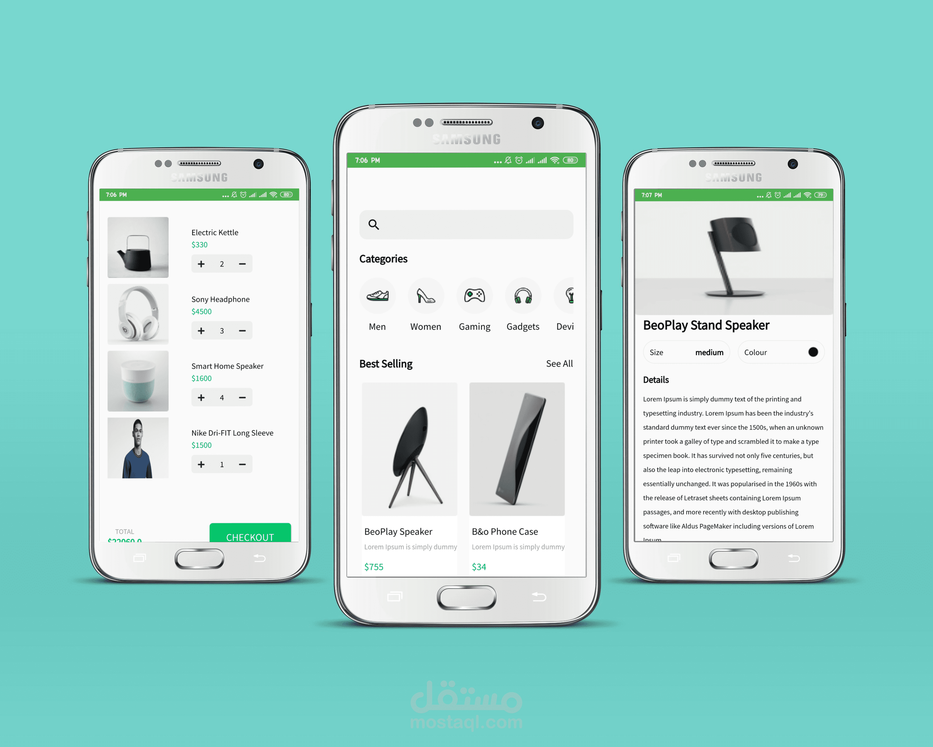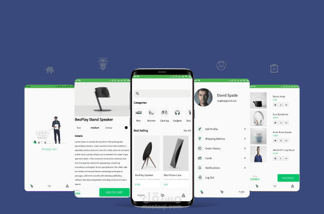 تطبيق متجر إلكتروني فيه جميع ميزات المتجر من إدخال المنتجات إلى عرضها على المستخدمين وإضافتها إلى السلة.