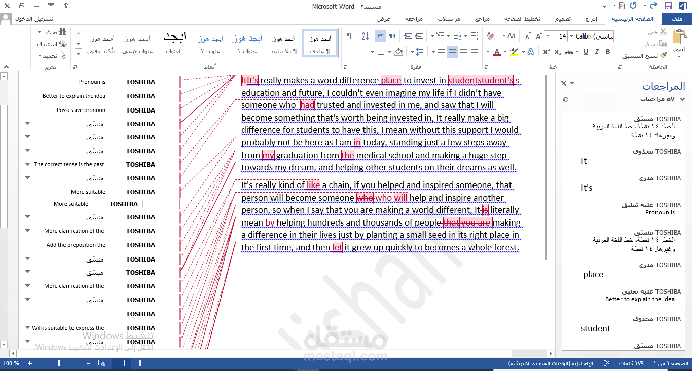 3- قراء النص كاملاً بعد ذلك للتأكد من ترابط السياق بشكل عام وأن التعديلات التي قمت بها قامت بتوضيح الفكرة والمعنى بشكل أبسط وأكثر احترافية