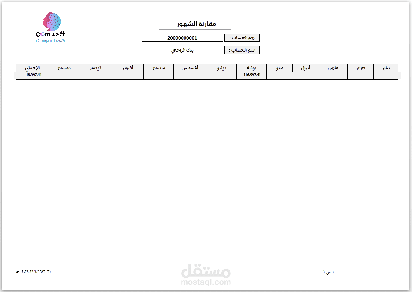 ٢- تقارير مقارنة وتشمل كشف مقارنة الشهور