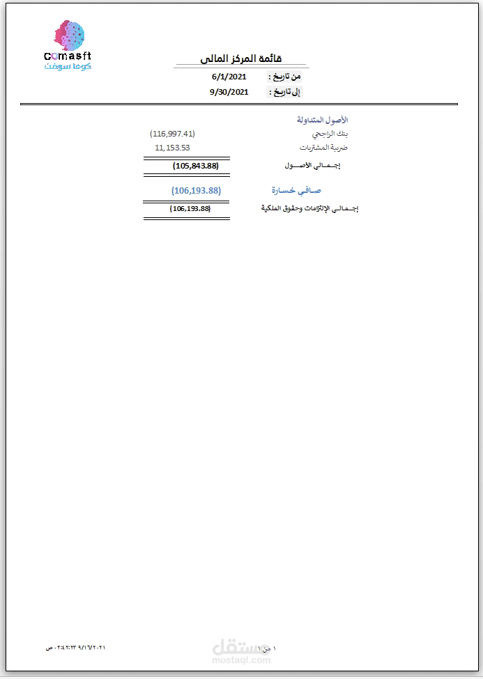 ٢-قائمة المركز المالي