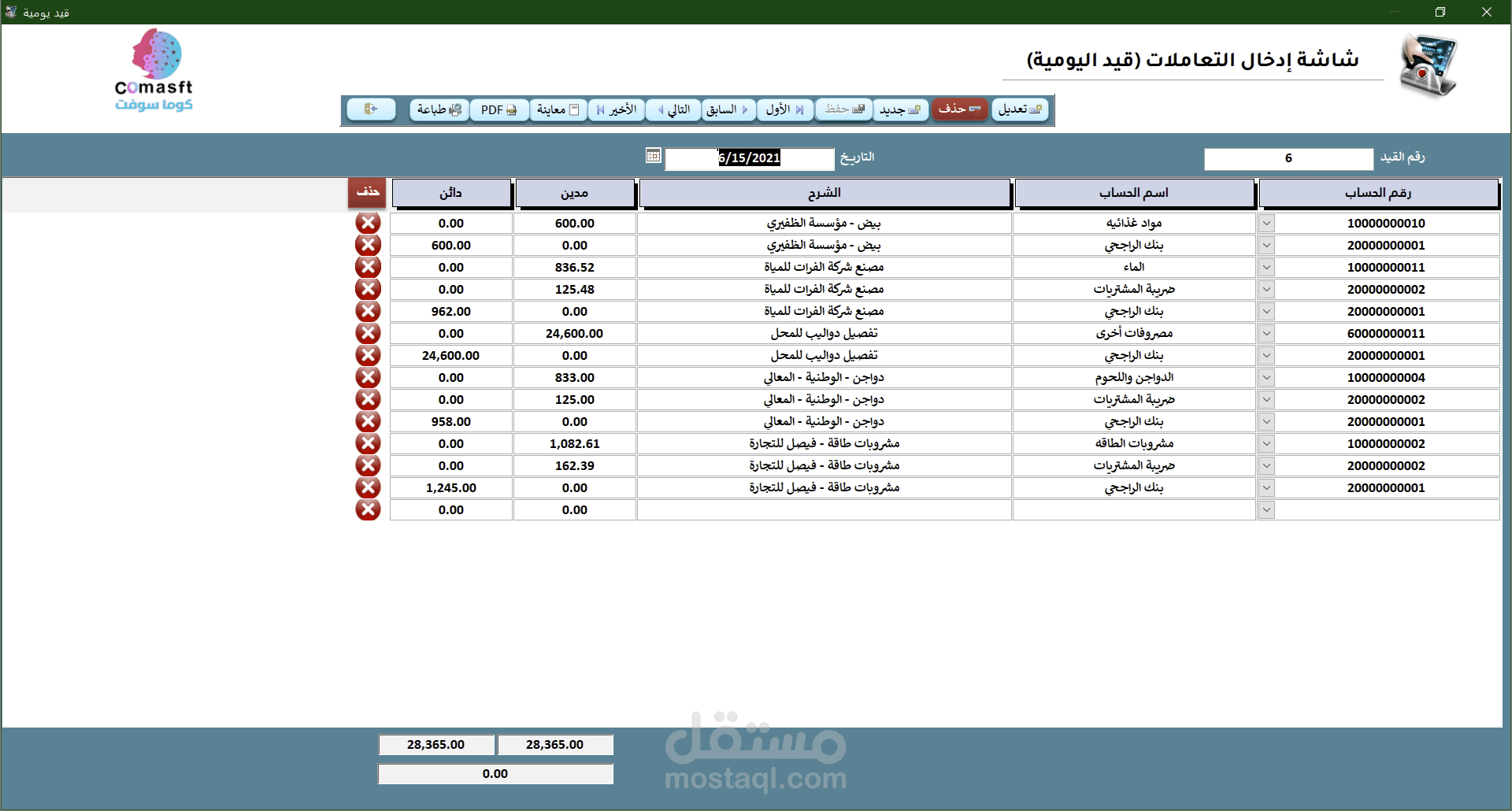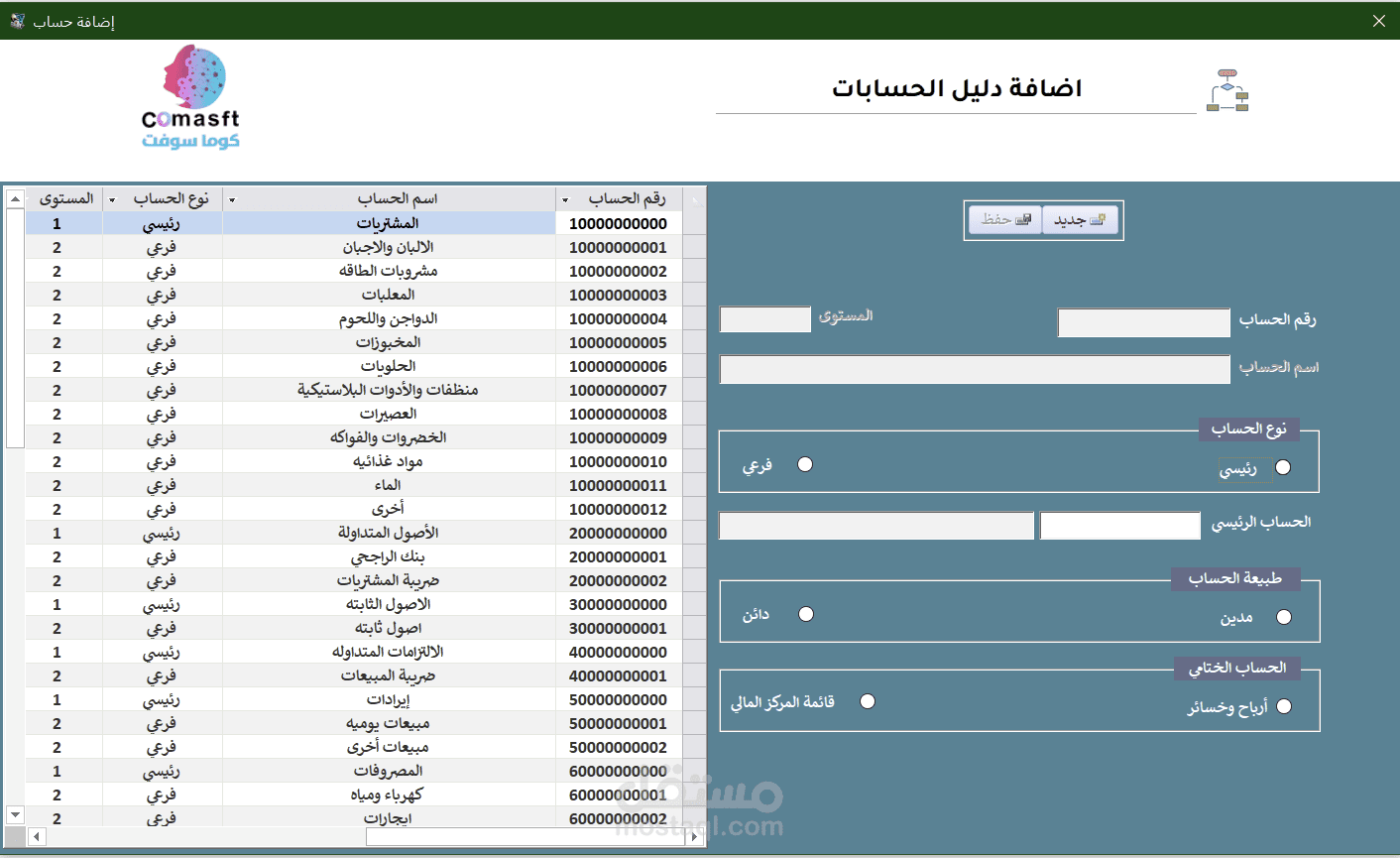 ٣- حذف حسابات مساعدة وخسائر وفر جهدك ووقتك واطلبه فورا ويمكن التعديل علي البرنامج ليناسب احتياجات شركتك