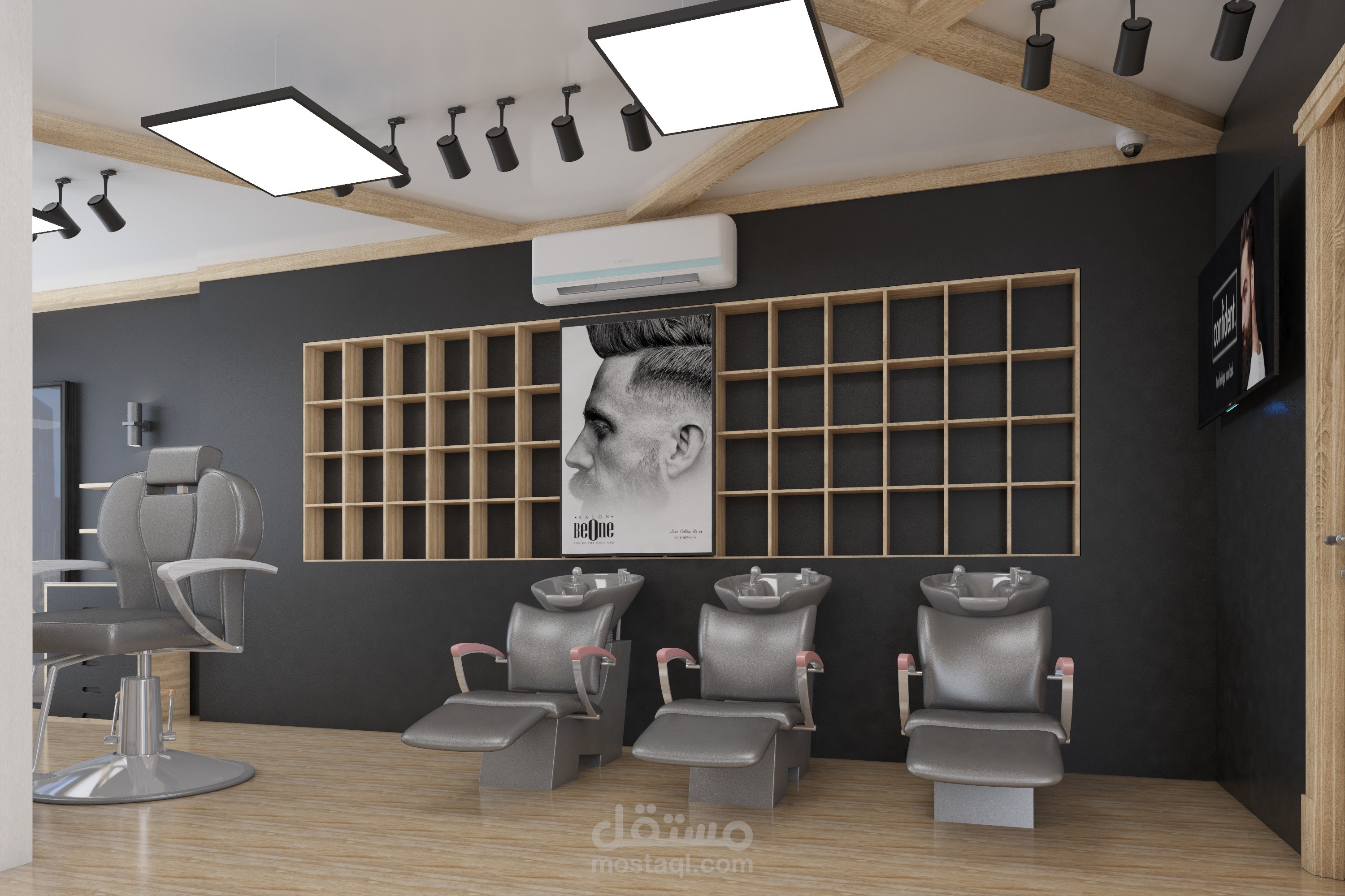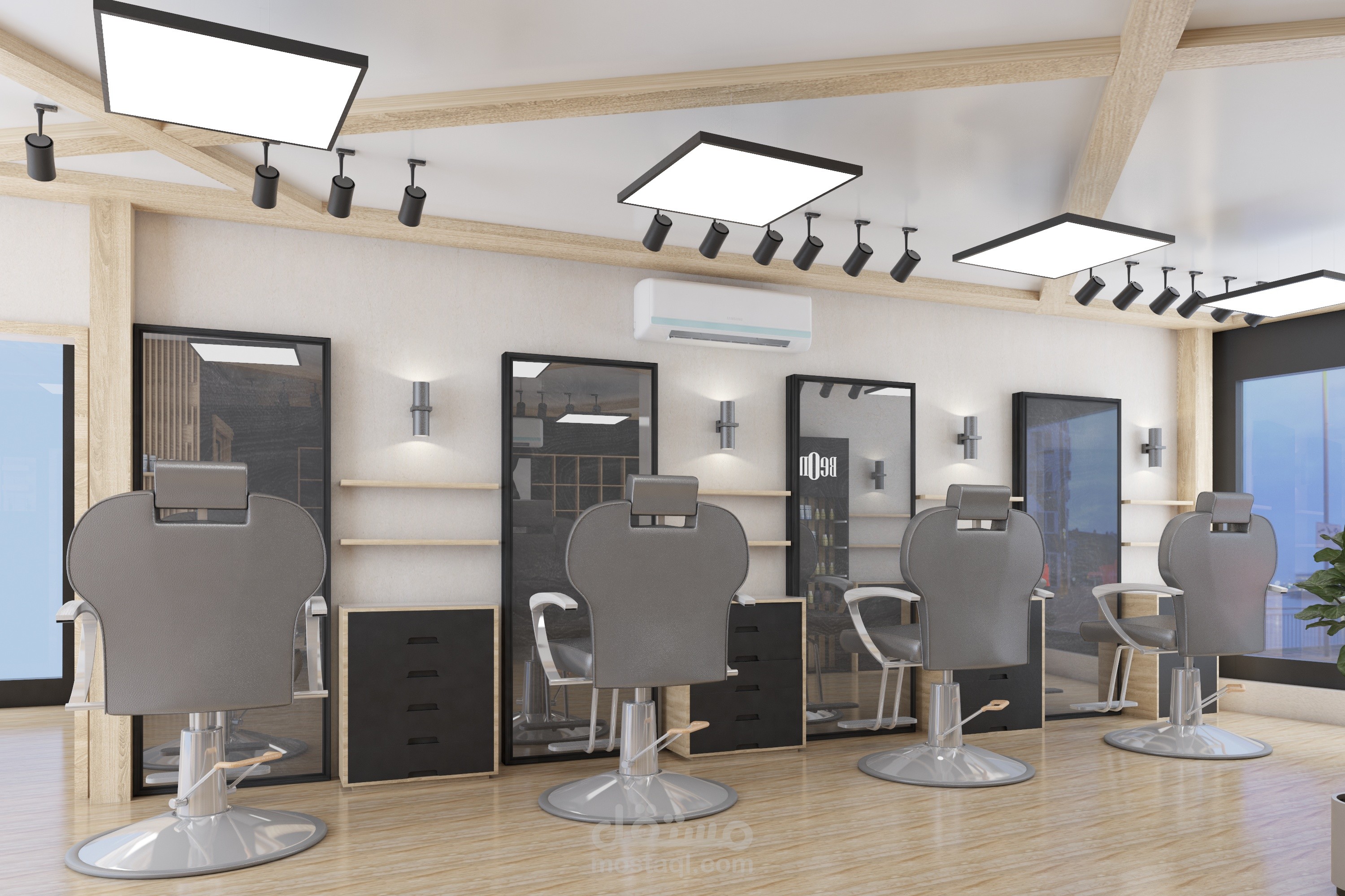 هو عباره عن تصميم ثرى دي داخلي لصالون حلاقه