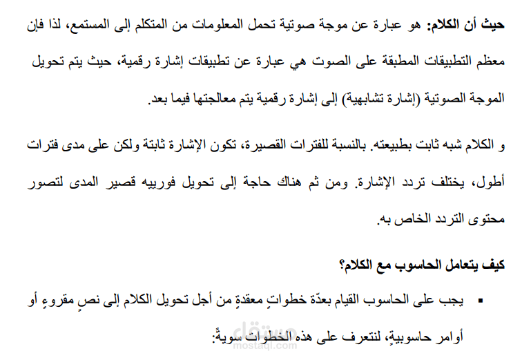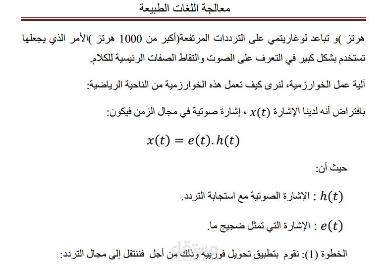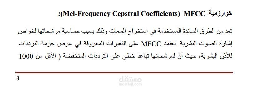 التعرف على الصوت هو أحد التطبيقات المشهورة لقسم الذكاء الاصطناعي وتعتبر خوارزمية Mel-Frequency Cepstral Coefficients من أشهر الخوارزميات لاستخراج الميزات.