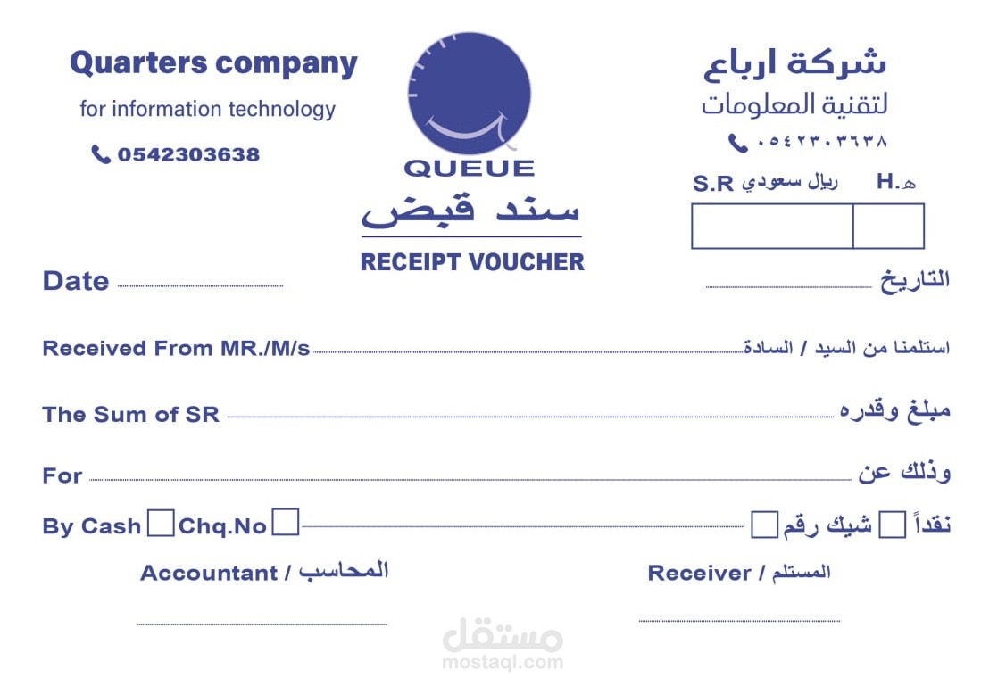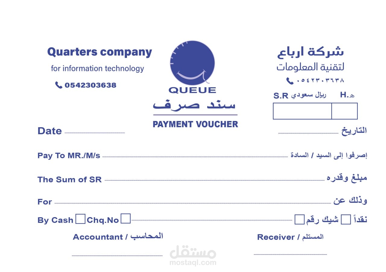 شعار ، سند قبض ، سند صرف ، ورق مراسلات ، وكرت شخصي على طلب العميل