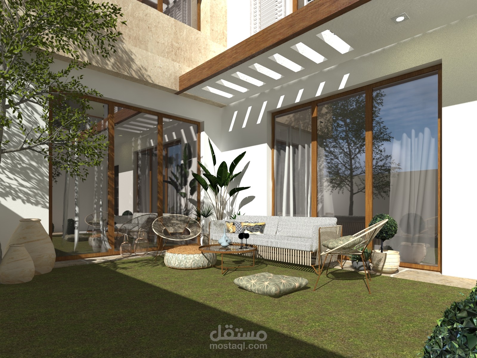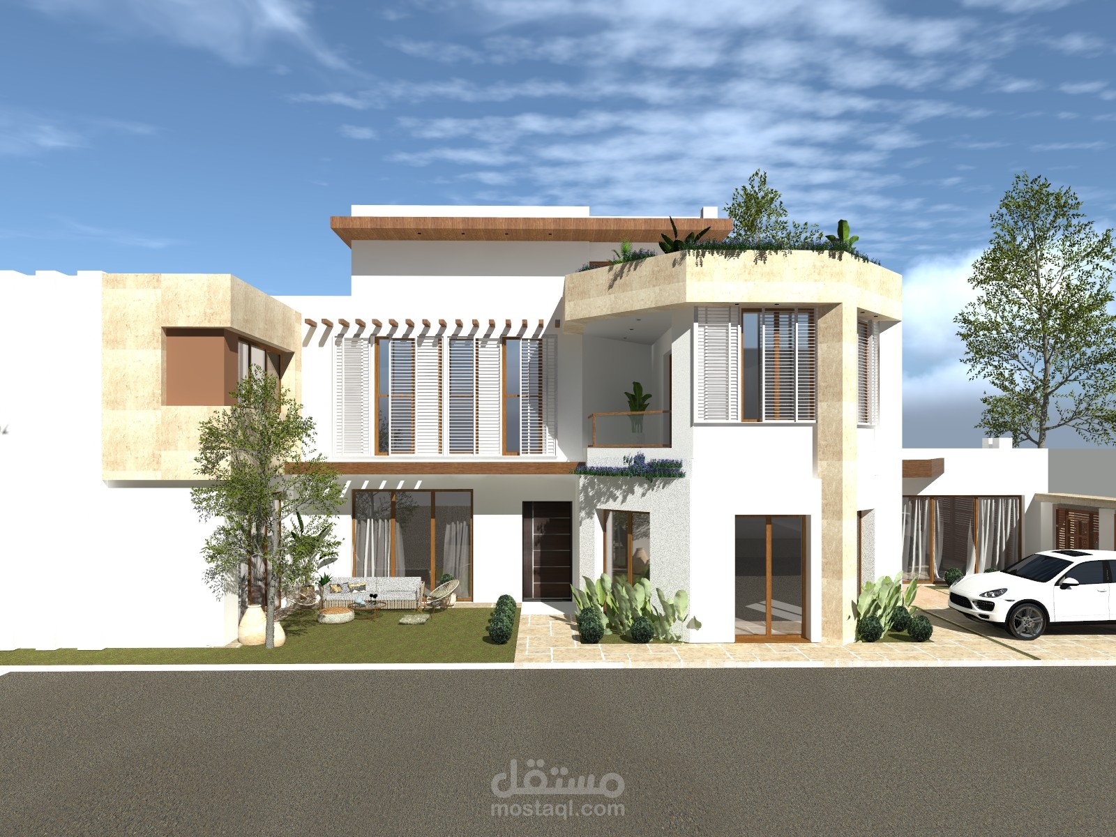 تصميم خارجي فيلا -تصميم واجهة مودرن- تصميم جلسة في الحديقة-تصميم السور