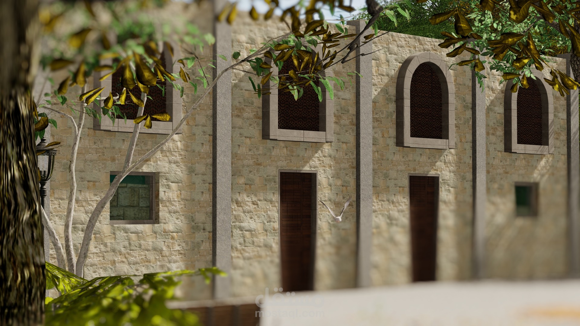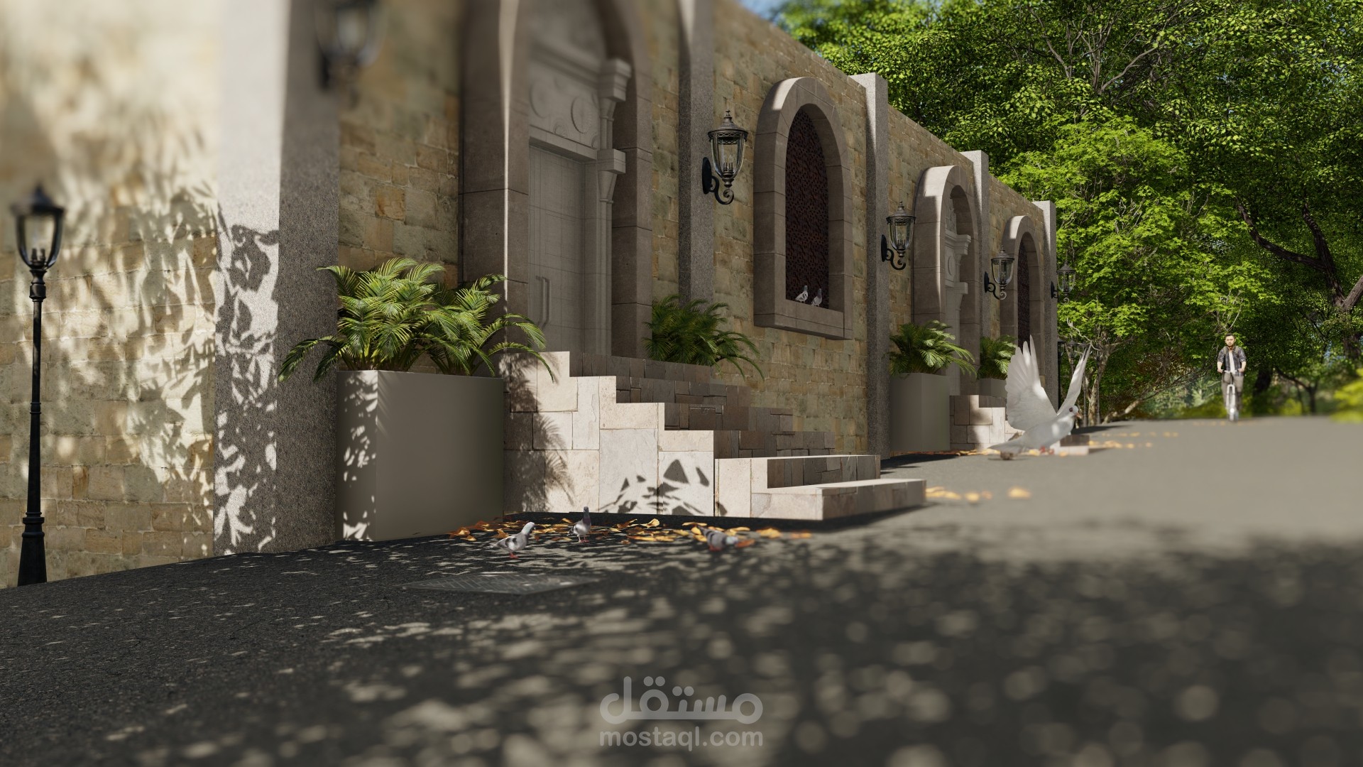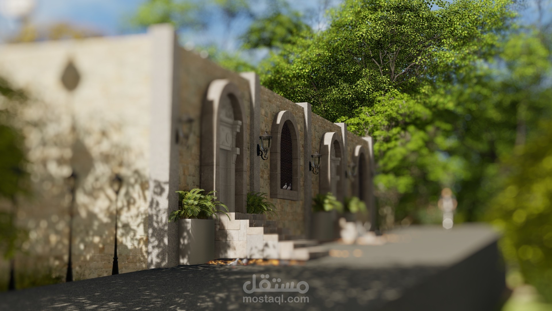 ترميم لبناء سابق و اضافة طابق جديد يحتوي على صالة بمدخل منفصل على ارض مائلة