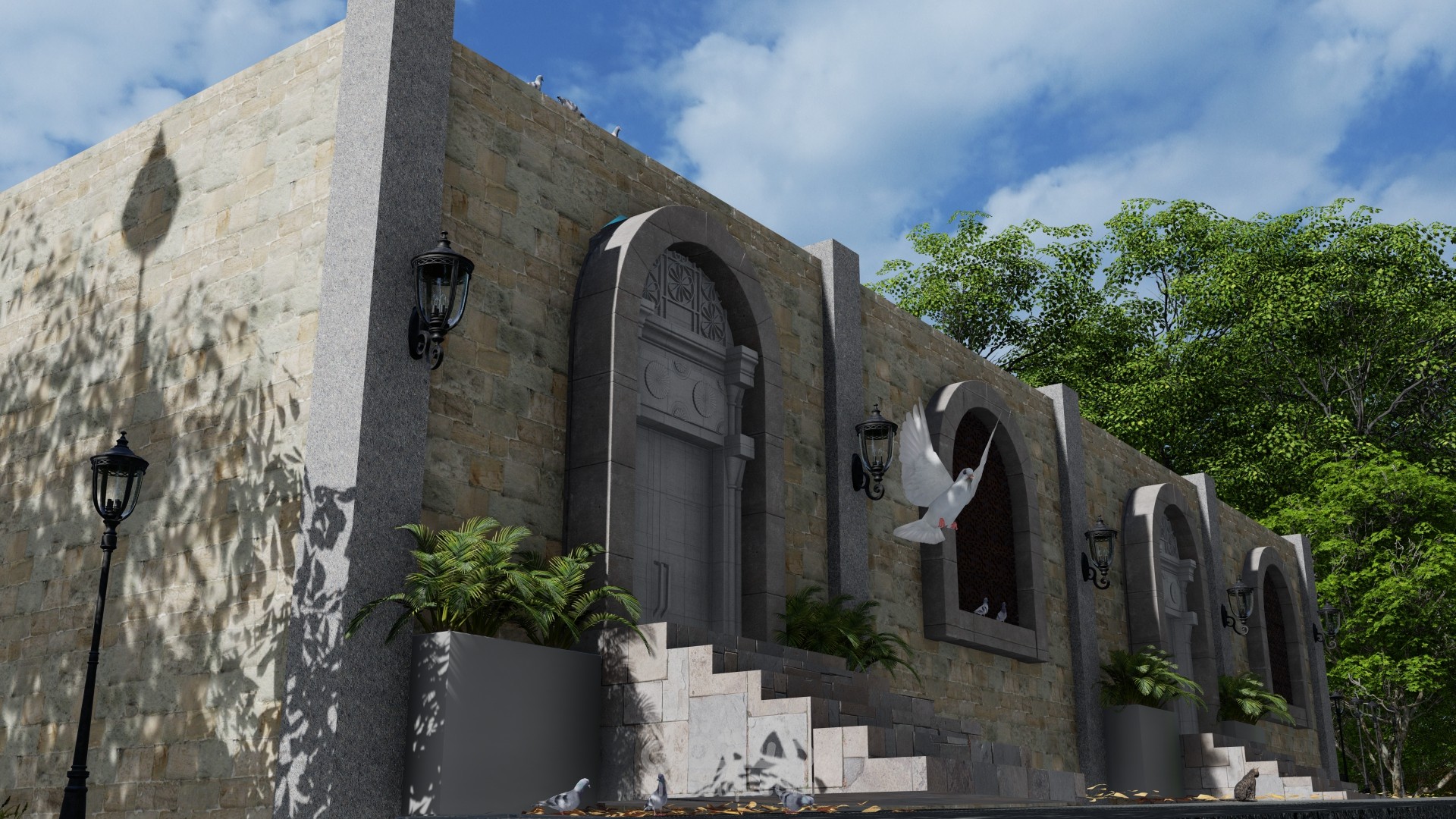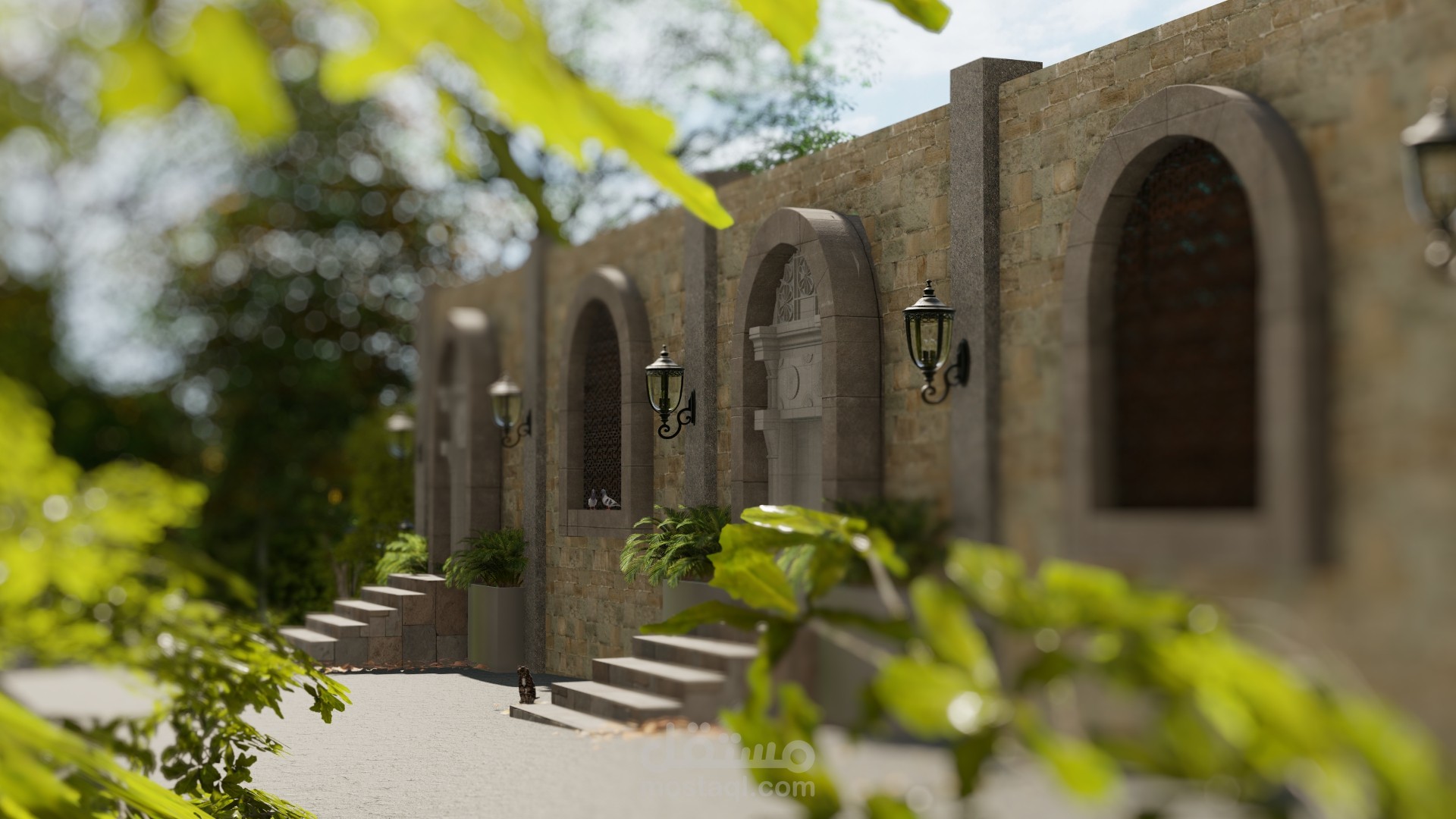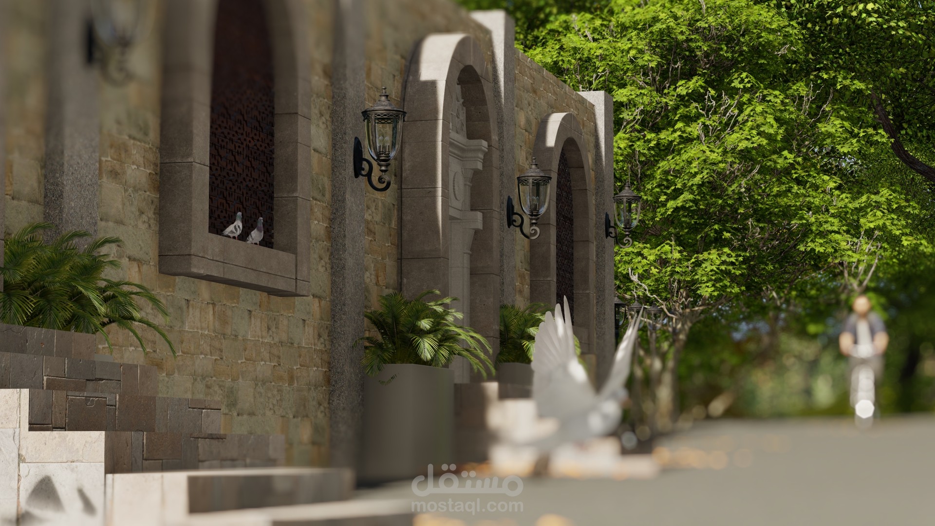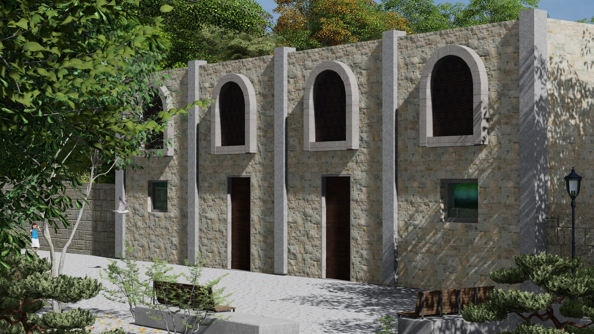 ترميم لبناء سابق و اضافة طابق جديد يحتوي على صالة بمدخل منفصل على ارض مائلة