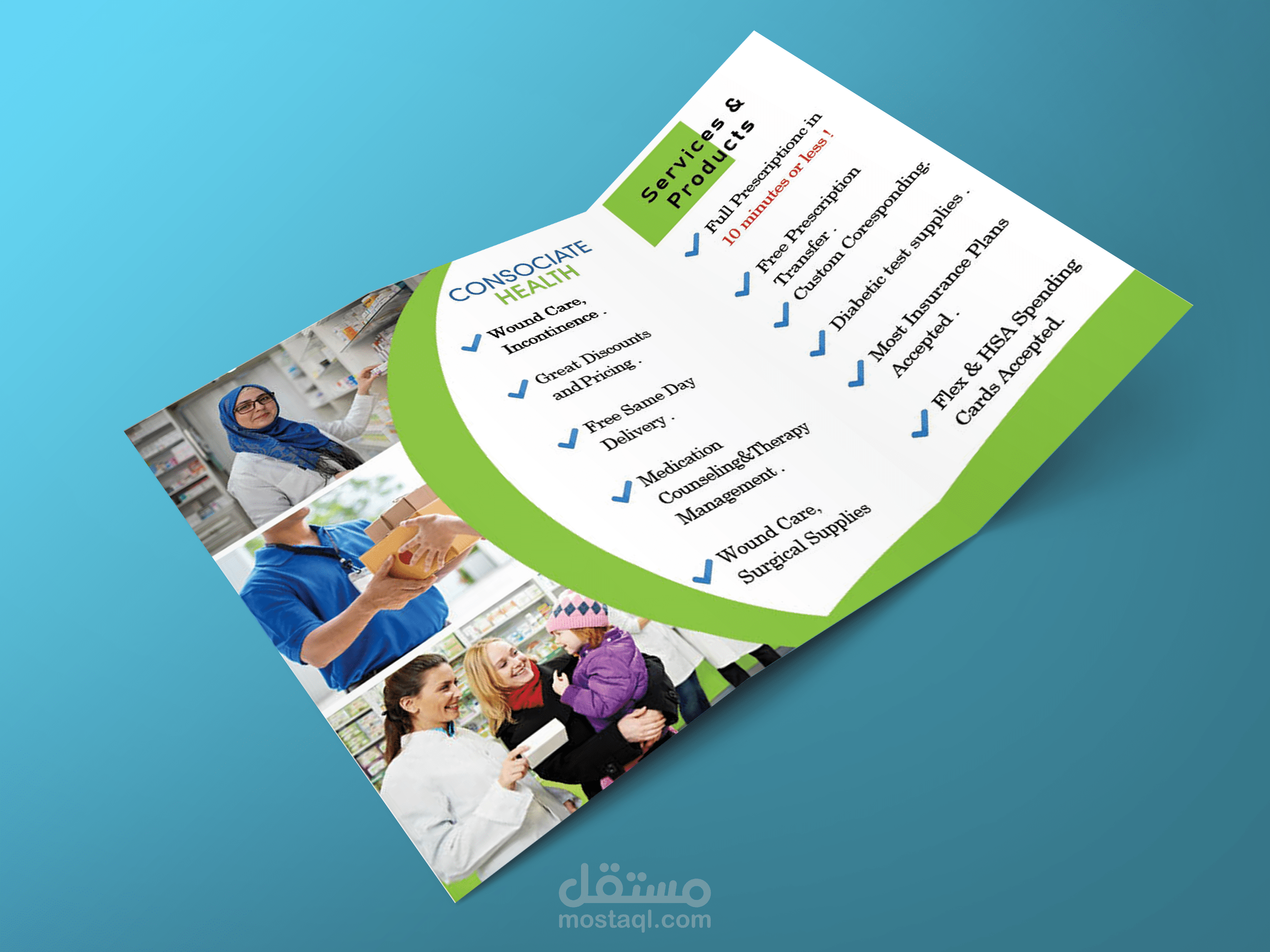 تصميم بروشور بأشكال وأفكار مختلفة تعطي تعريف واضح ومميز لشركتك حتى يتسنى لك تعريف الأشخاص على مجالك وما تقدمه من خدمات، وذلك من خلال برامج الانديزاين والفوتشوب، وأختار الألوان المناسبة لمشروعك و الهوية البصرية الخاصة به، وأنتقي العناصر المناسبة و عالية الجودة لإيصال فكرتك للجمهور. يتم تسليم التصاميم بعدة صيغ و بالمقاسات المناسبة لعملك.