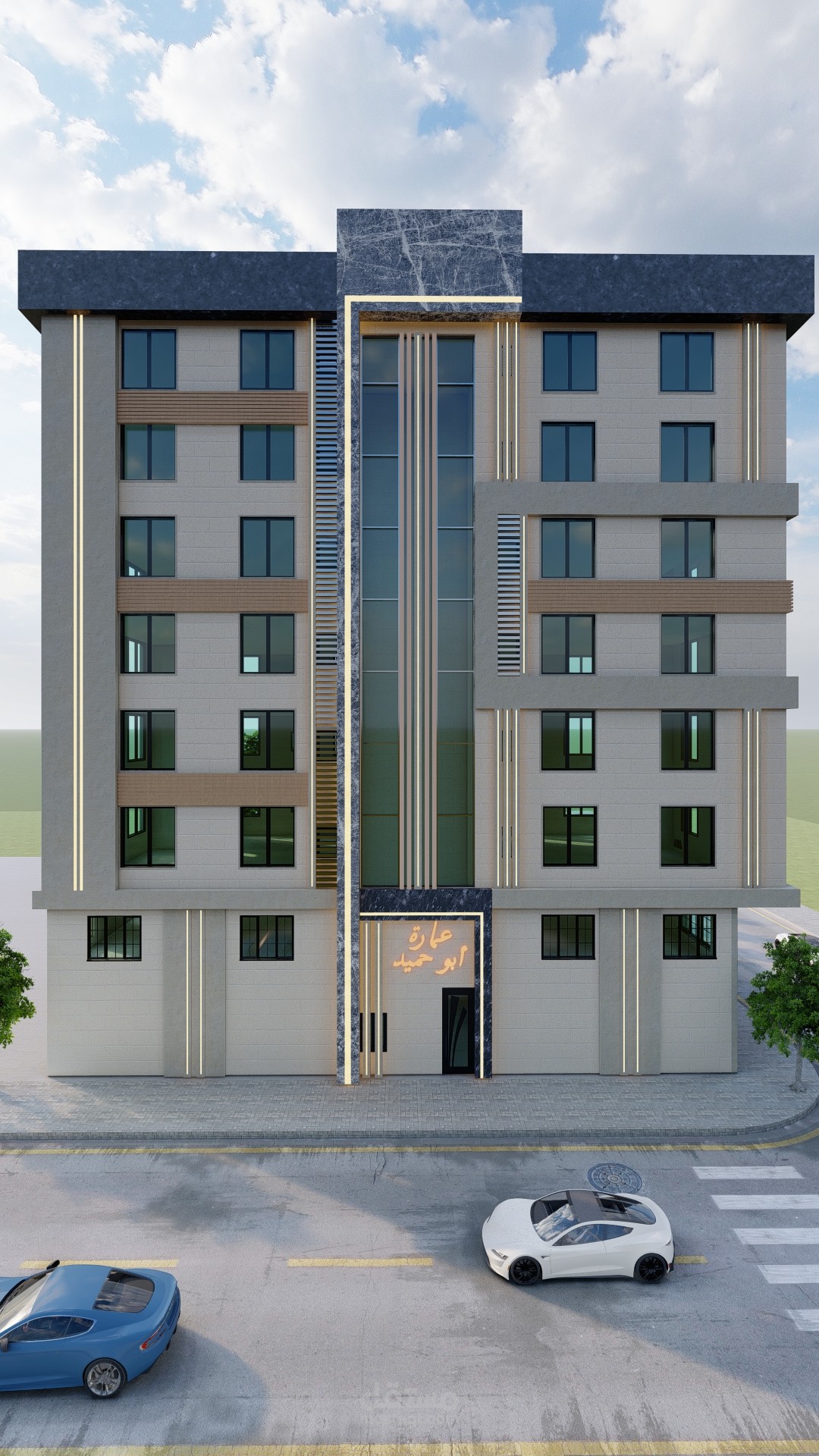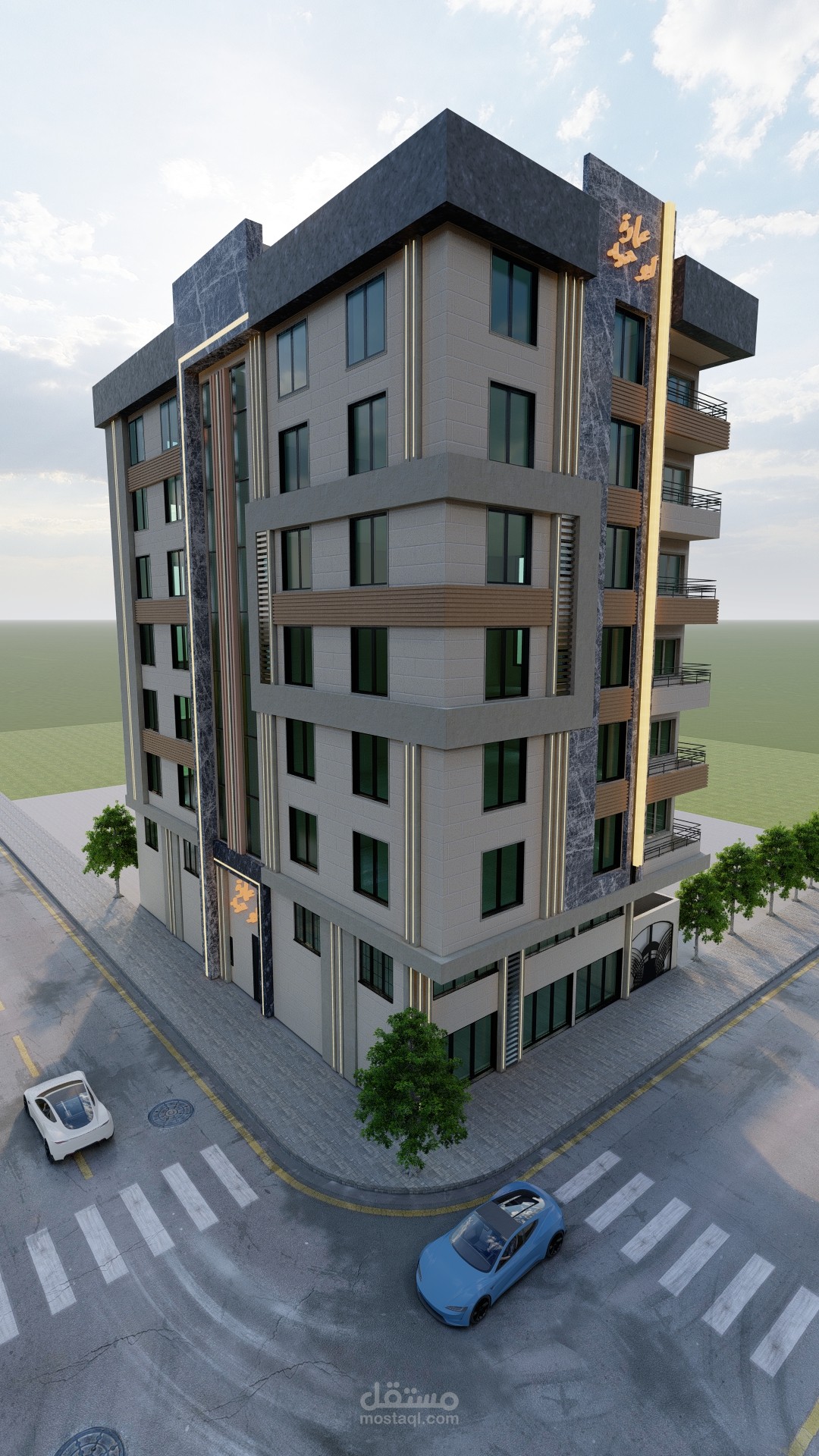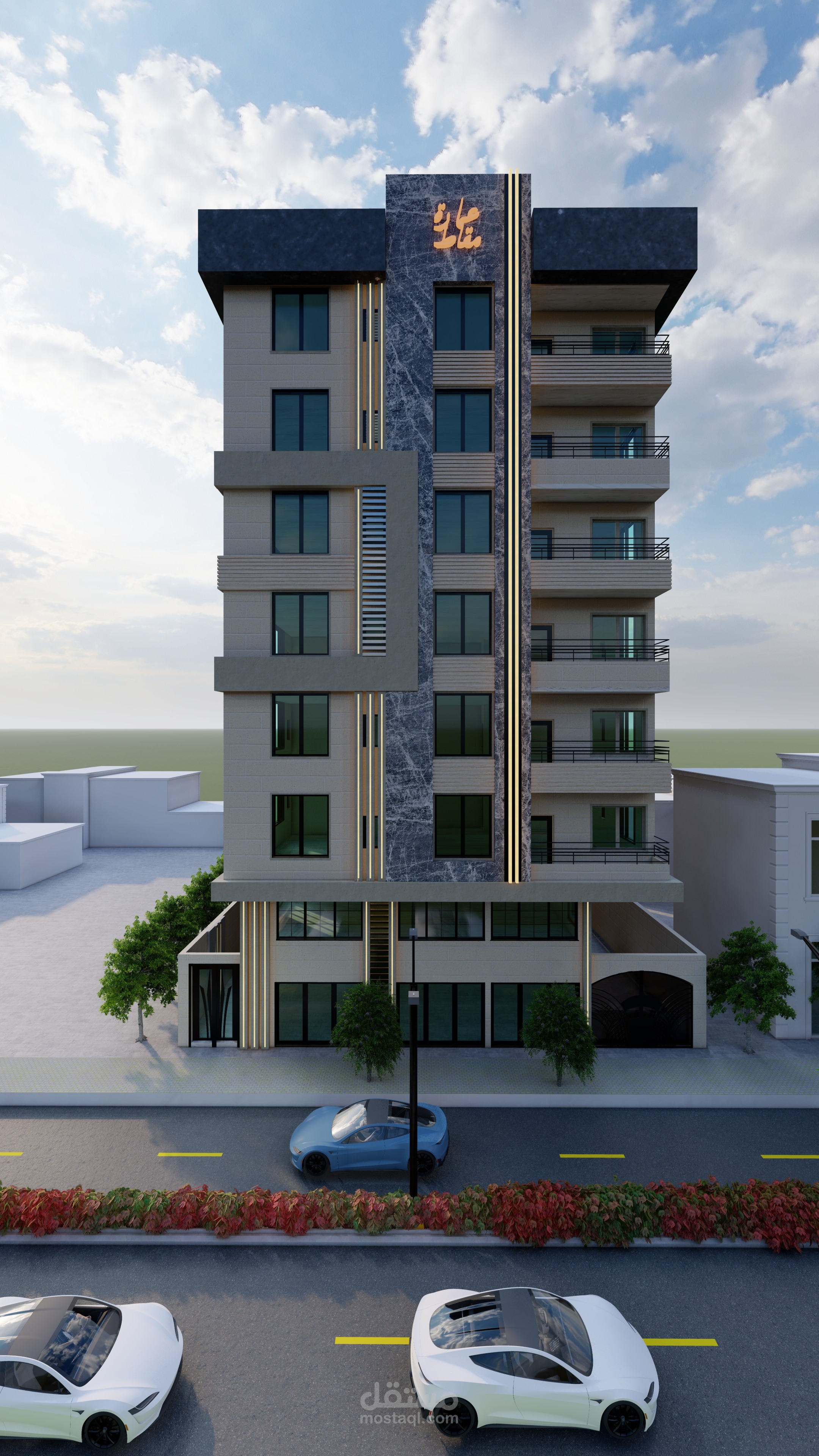 تصميم حديث لواجهات برج سكني لصالح مكتب هندسي بالشراكة مع شريكتي م. بهية المبيض.