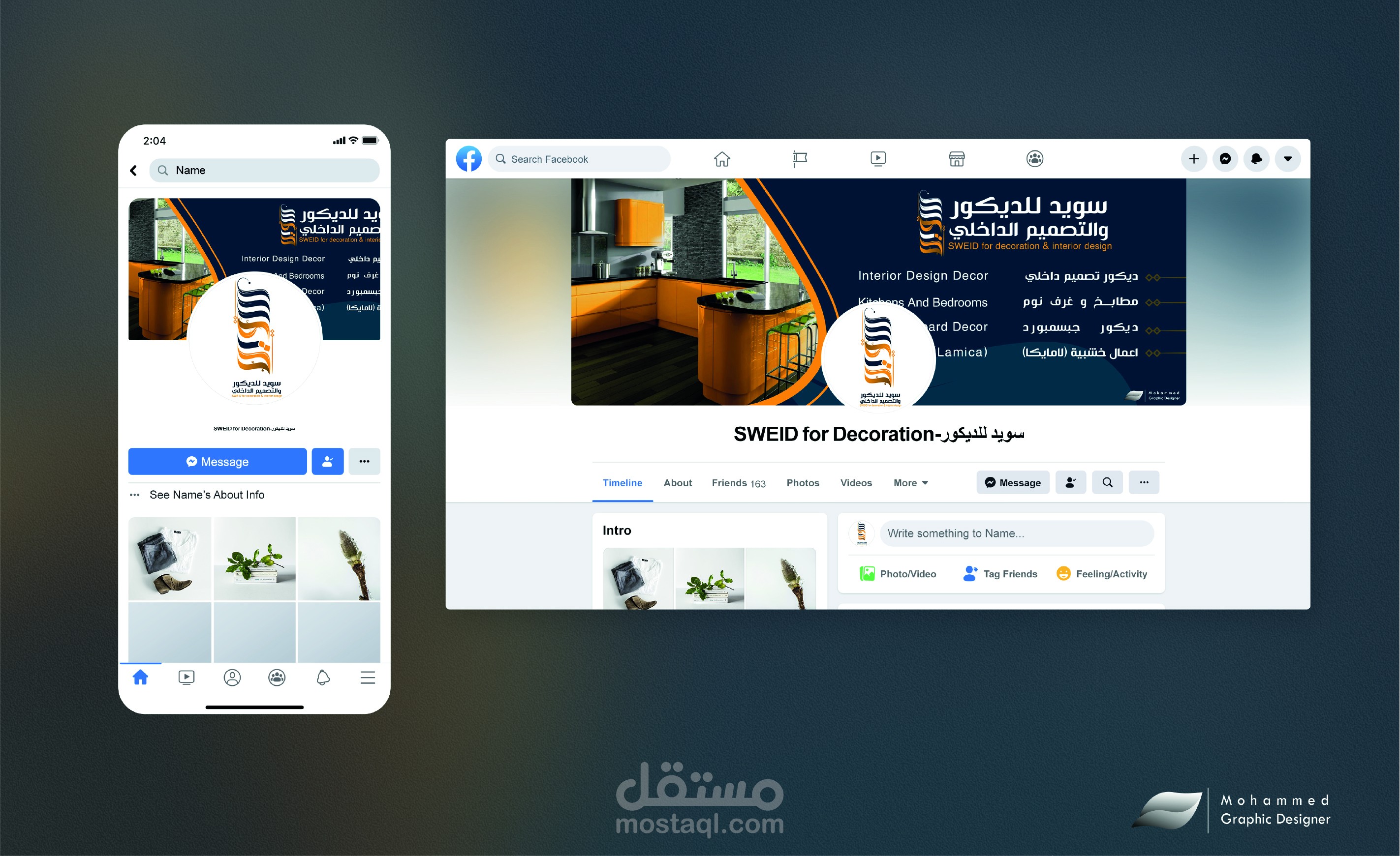 هوية بصرية لورشة عمل ديكورات منازل يحتوي على logo -bisnes card -social midea design