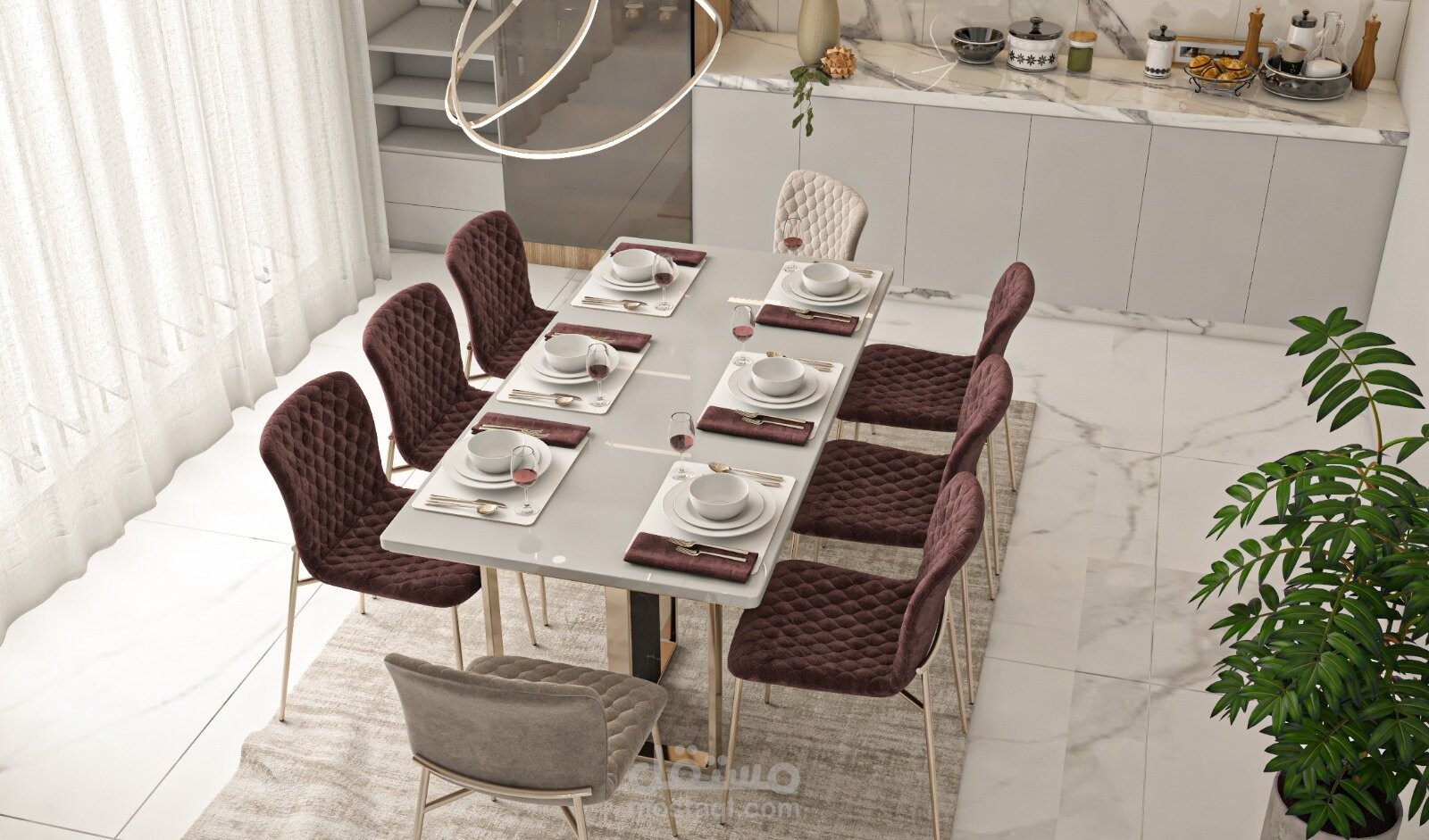 تم تصميم غرفة طعام حسب رغبة الزبون من ناحية التصميم والالوان