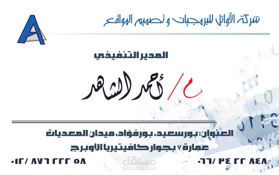 على اللإلستريتور .. بطاقة عمل لصاحب مطعم .. بطاقة عمل لمدير شركة برمجيات