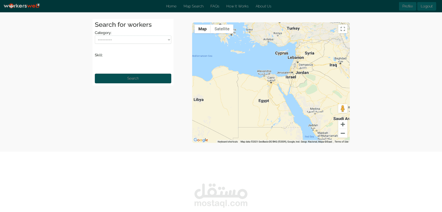 و يستطيع الزائر البحث اما بالمهاره في اي دوله او البحث في المنطقه المحيطه به فقط باستخدام خرائط جوجل