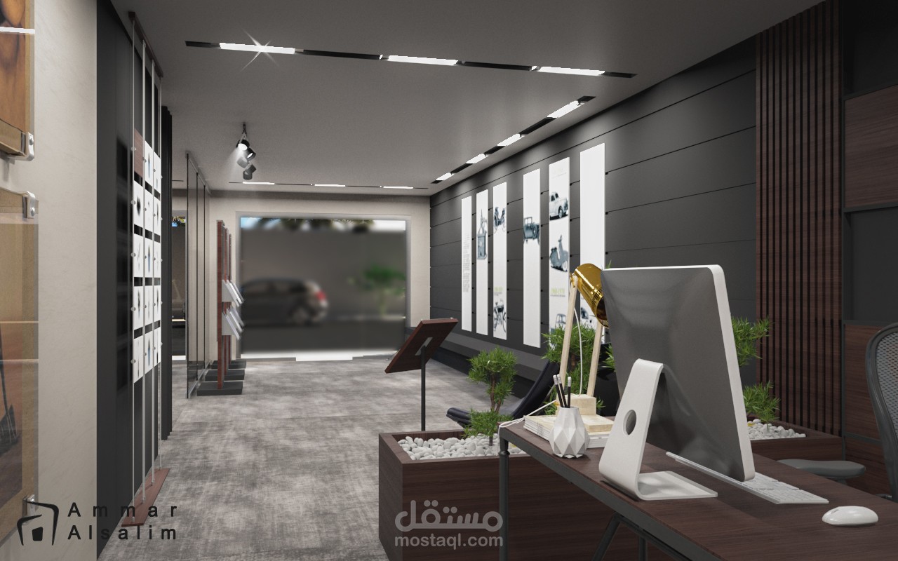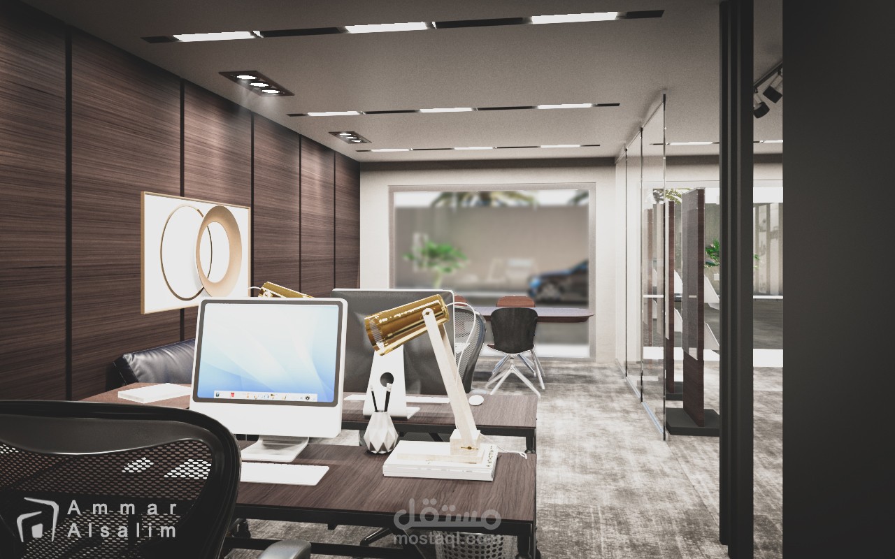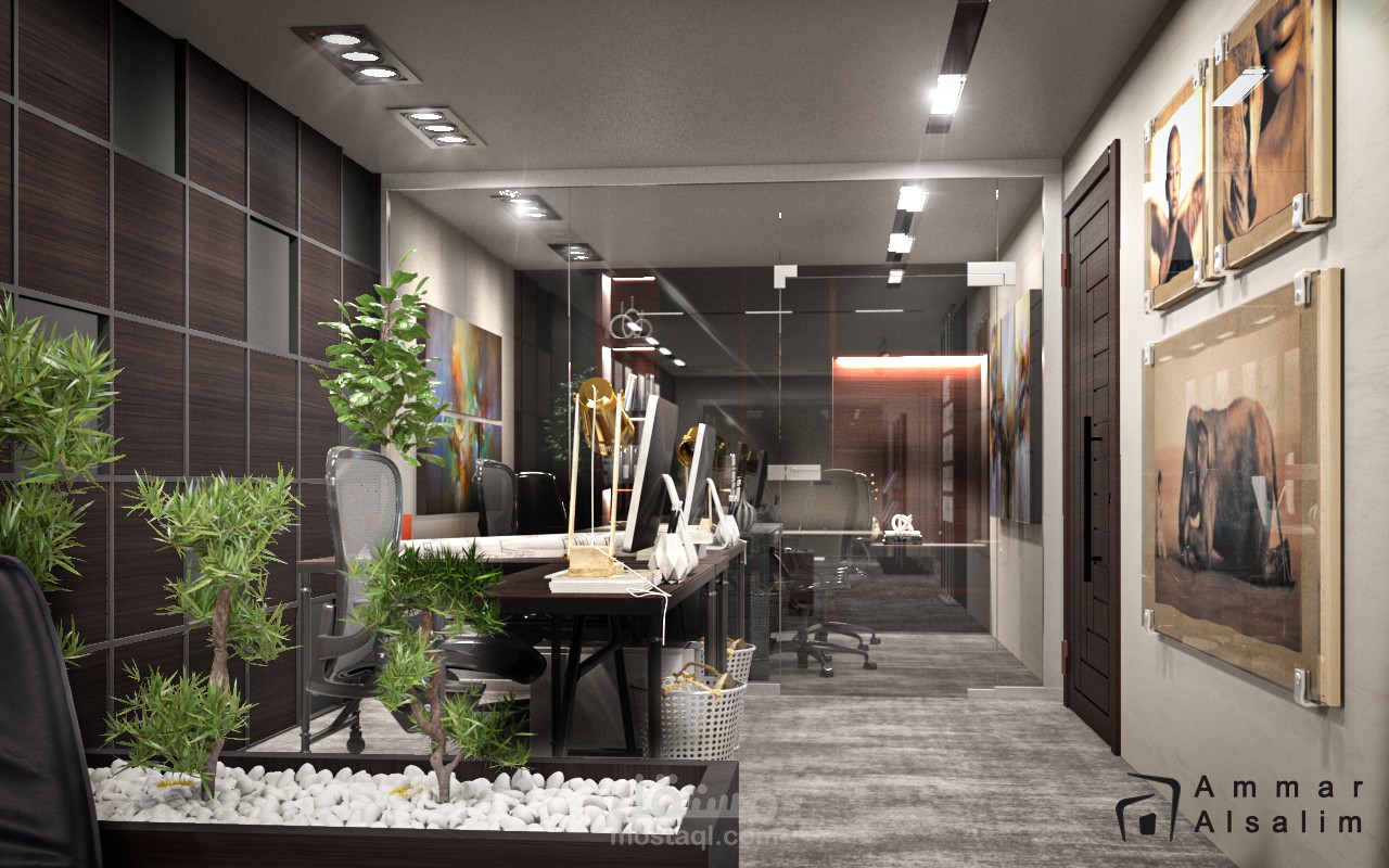 ضمن مساحة 100 متر مربع تم تصميم مكتب شركة بإسلوب مودرن … توجه التصميم للفراغات المفتوحة وبساطة التصميم.