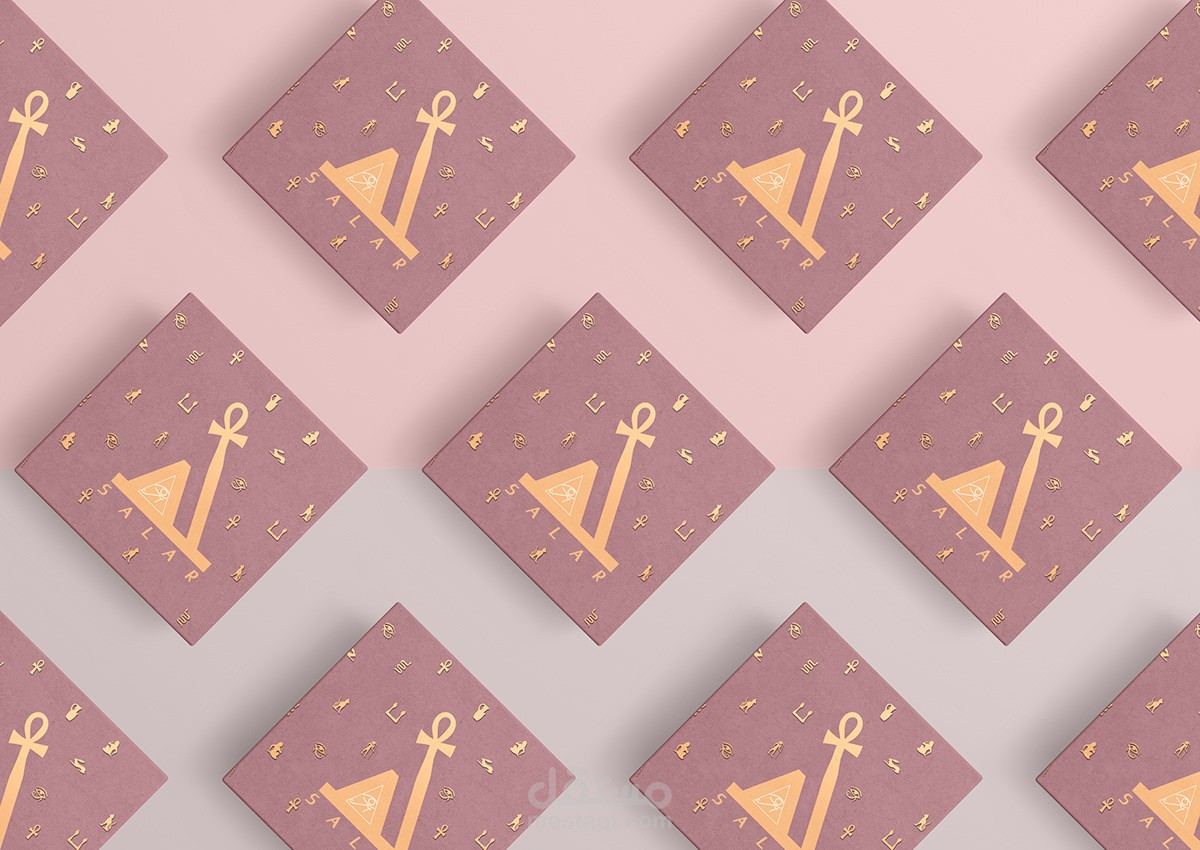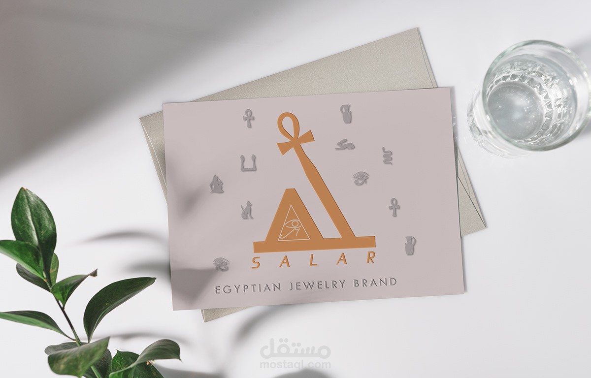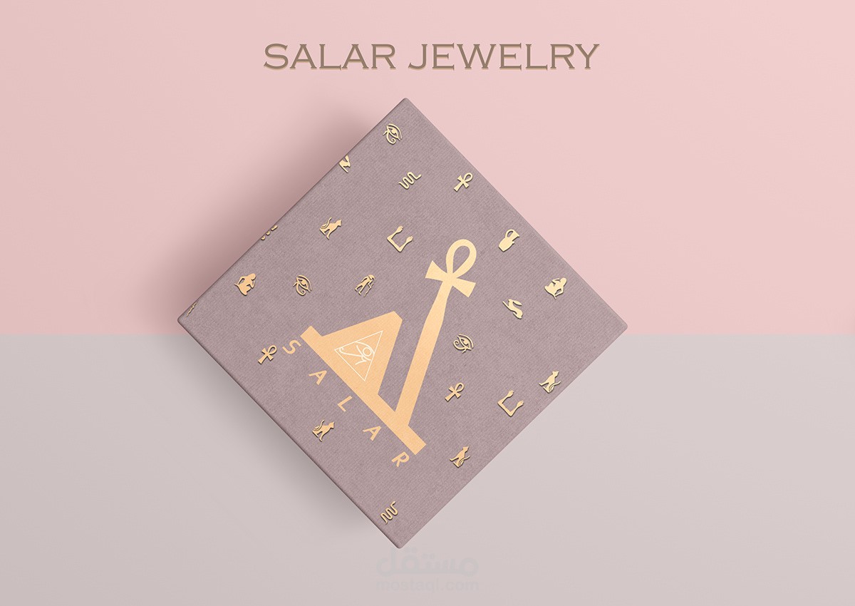 لوجو مستوحي من رموز فرعونية لأنة براند مصري و نظرا لأهتمام الفراعنة بالحلي لذلك يوجد ترابط في كل عناصر اللوجو ، كما يوجد هوية بصرية للبراند و تصميم لعلبة المجوهرات الخاصة بها