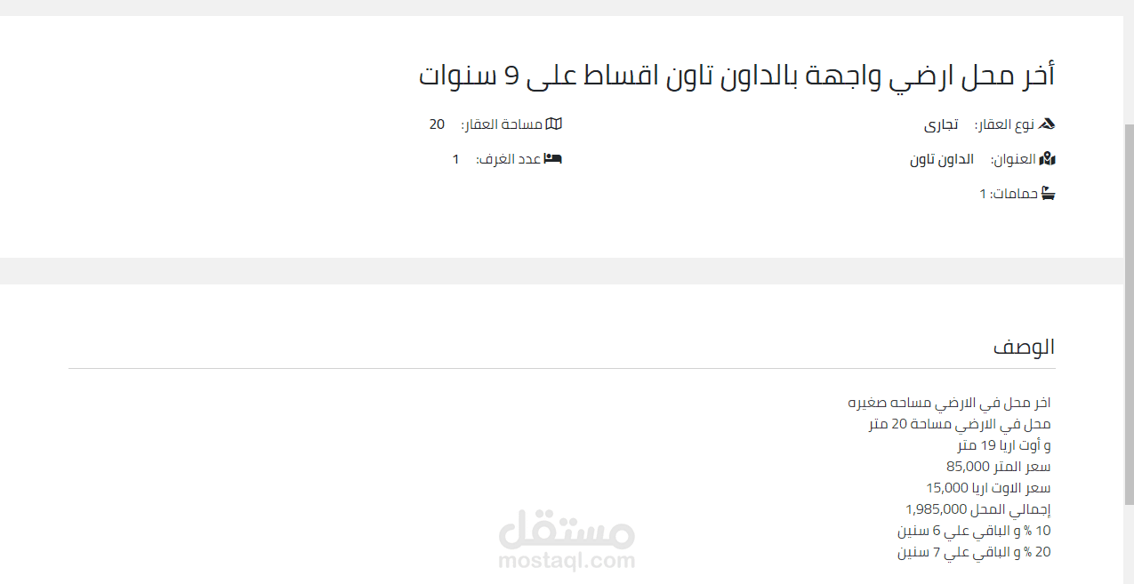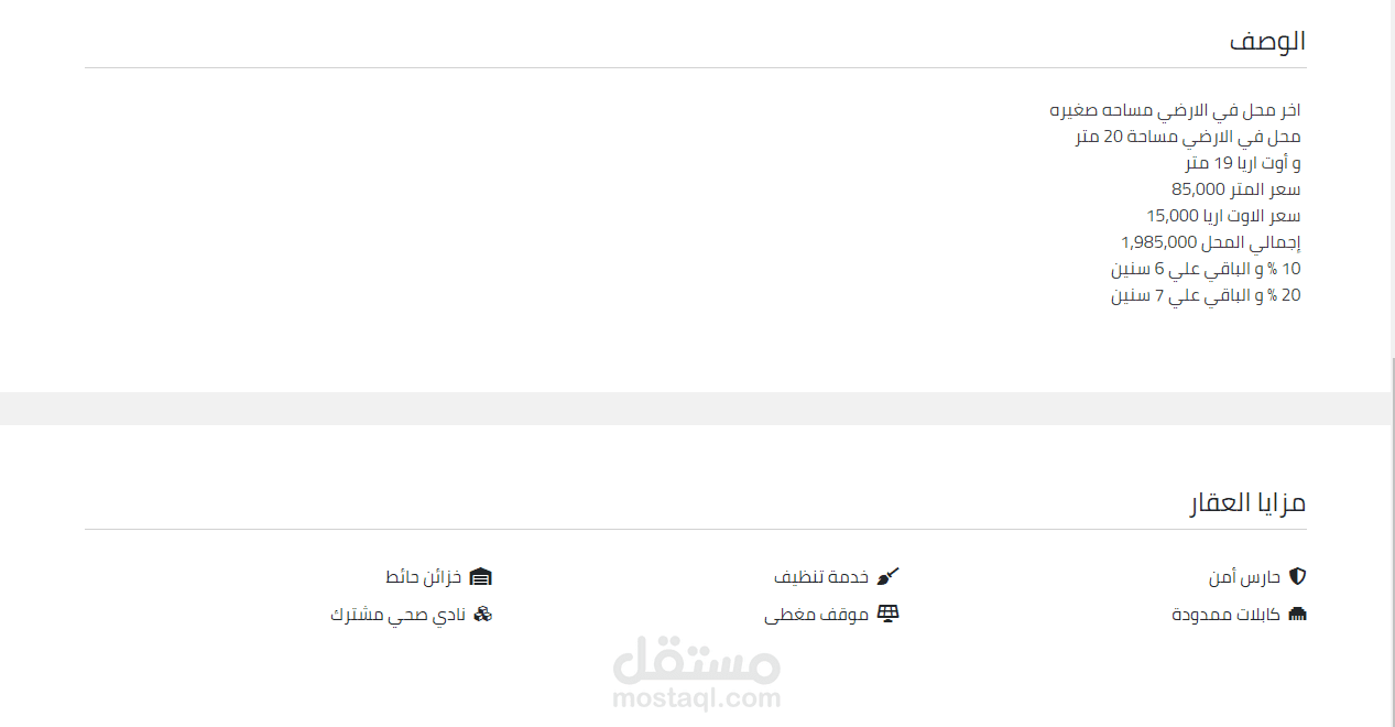- لوحة تحكم كامله للموقع لاضافة العقارت والعديل عليها وحذفها واضافة الاماكن الخاصة بالعقارات