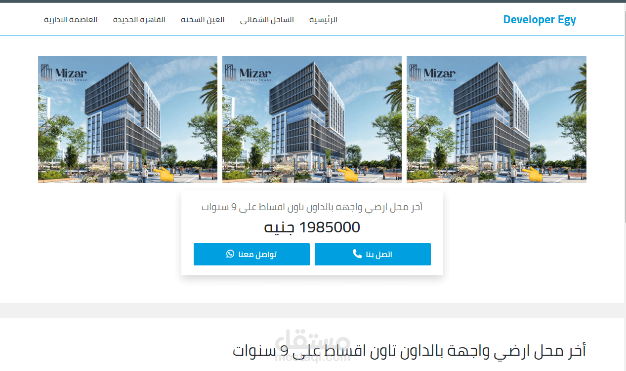 -عرض مميزات العقارات والتواصل مبشاره من خلال التصال او الوتساب من خلال الضغط على زرار
