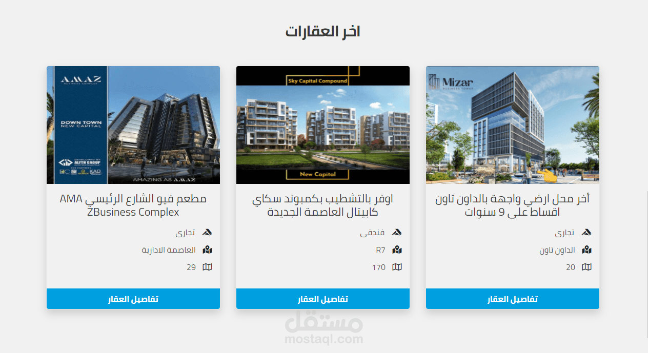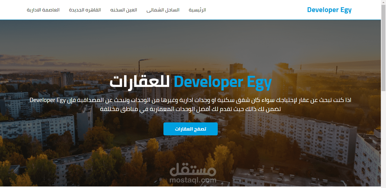 موقع عقارات لعرض العقارات المتاحه وهى لشركه developer egy يعرض لك الموقع اخر العقارات التى تم اضافتها ويعرض لك العقارات حسب الاماكن والموقع به لوحة تحكم كامله لاضافة الاماكن والعقارات