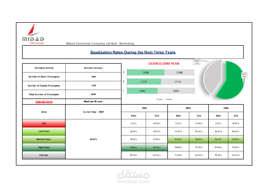 انشاء ملف اكسل لحساب الموظفين طبقاً وقانون نطاقات المطور ، بحيث يظهر نطاق الشركة طبقاً ونشاط الشركة وعدد العمالة السعودية وعدد العمالة الوافدة ، مع وضع خطة لإيجاد عدد العمالة طبقاً لنطاق معني مطلوب