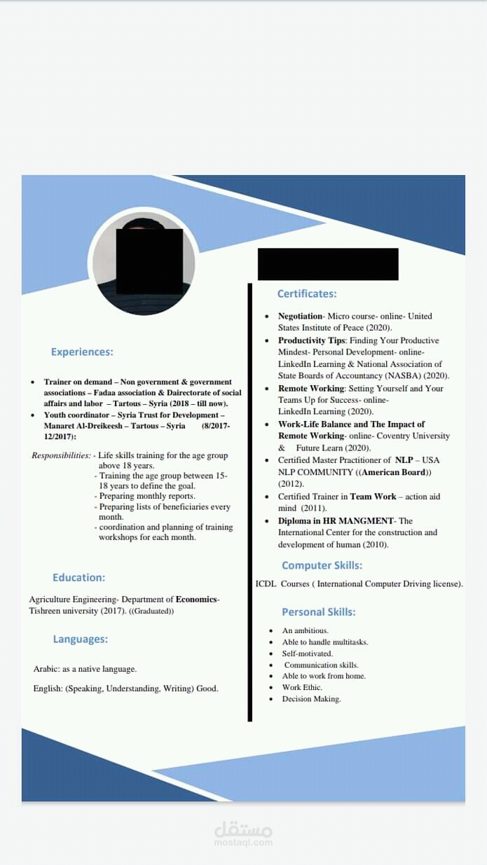 قمت بتصميم سيرة ذاتية بحسب معايير أكاديمية وعالمية