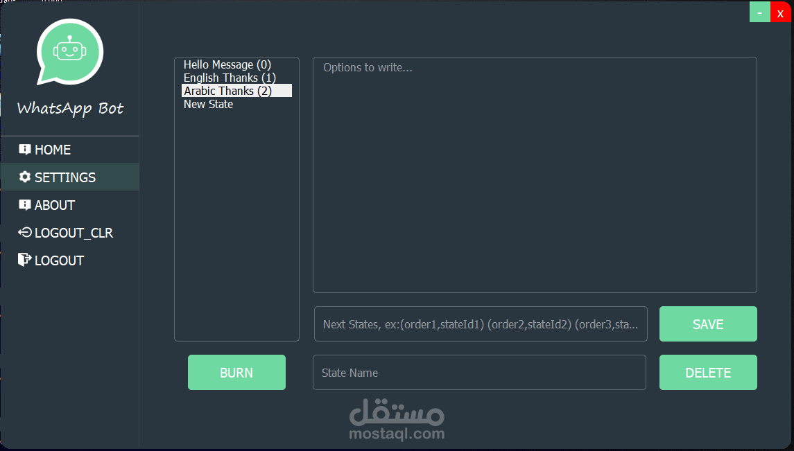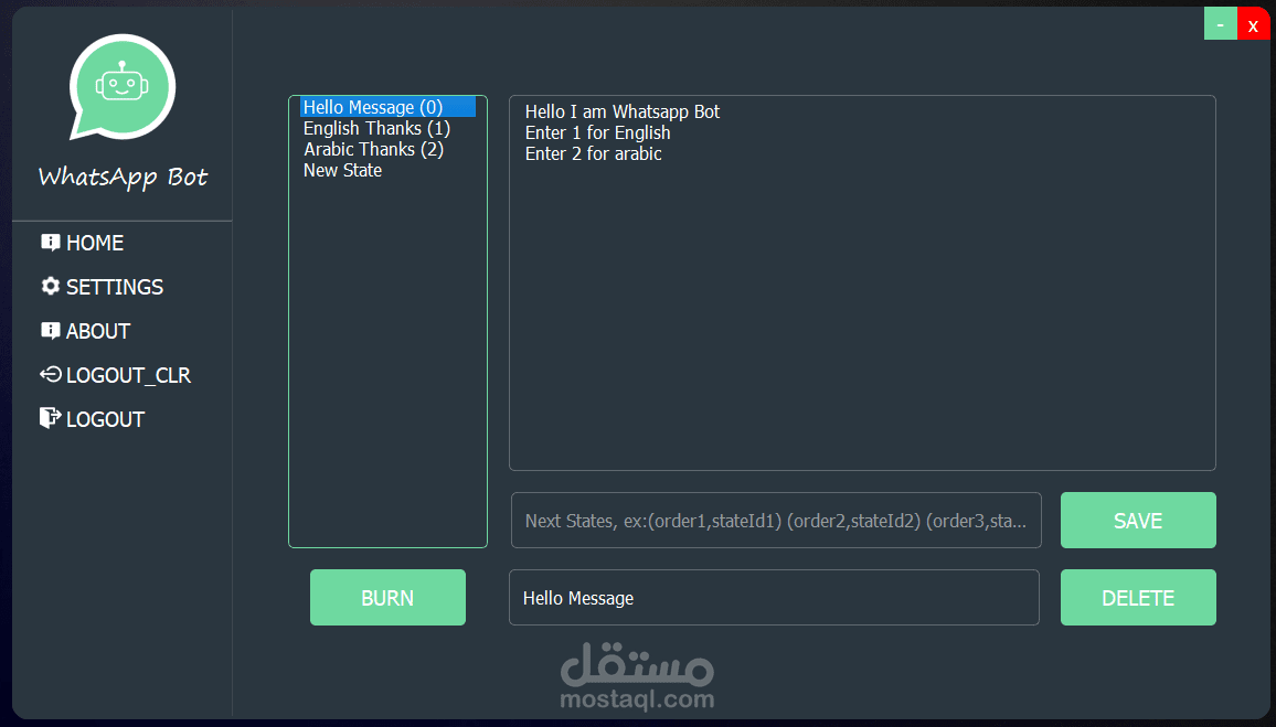 بوت واتس أب مختص بالرد التلقائي، يدعم جميع اللغات و يمكن إعداده من البرنامج لتلقي مختلف الأوامر و الاستجابة بالشكل الذي ترغب به.