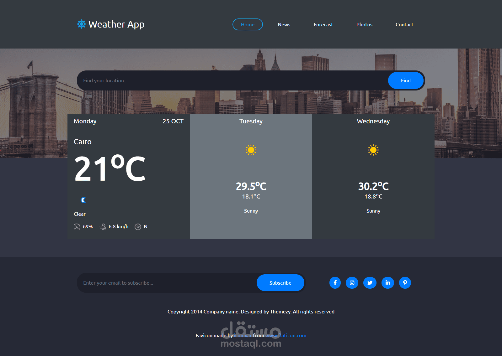 Weather application using API, HTML5, CSS3, Bootstrap, JavaScript, and jQuery. Included real-time search feature.