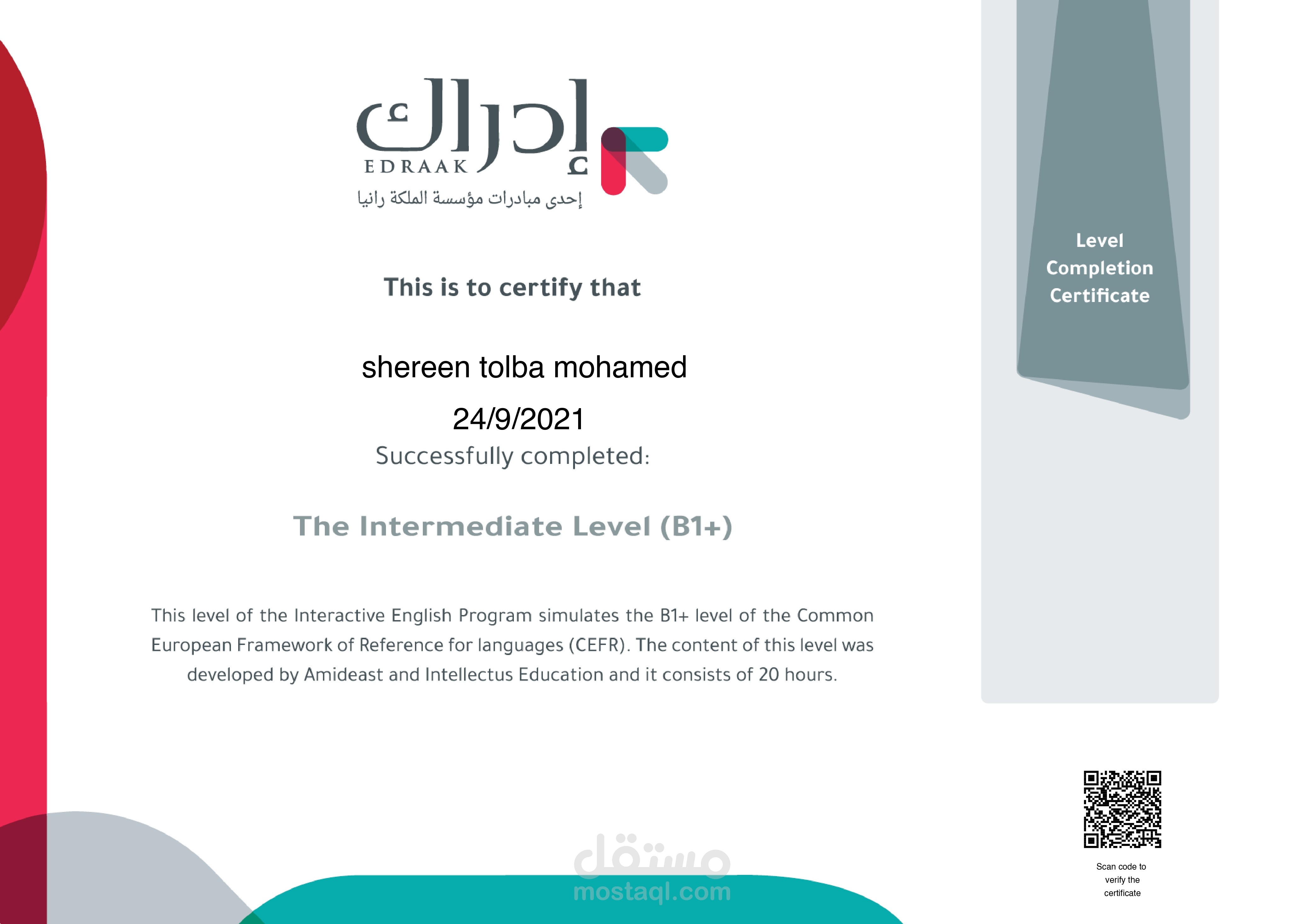 احاول تطوير نفسى فى اللغة الانجليزيه وقد كنت فى المستوى الرابع واكملته وايضا دخلت المستوى الخامس الذى يمثل A1+ واكملته ايضا ودخلت المستوى السادس والذى يمثل B2 والحمد لله اكملته بنجاح وساواصل تطوير نفسى حتى تصبح الانجليزيه عندى مثل العربية
