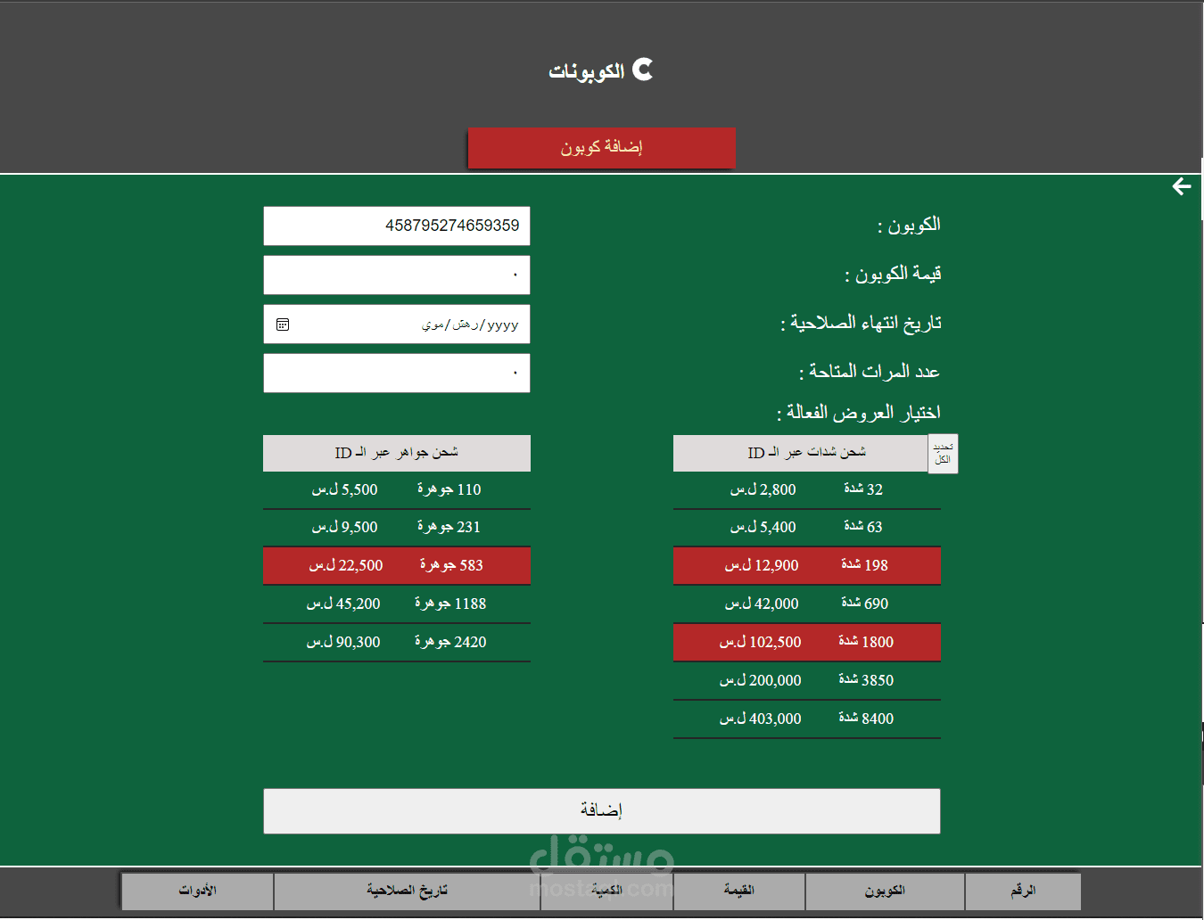 إضافة وتعديل البطاقات والأقسام