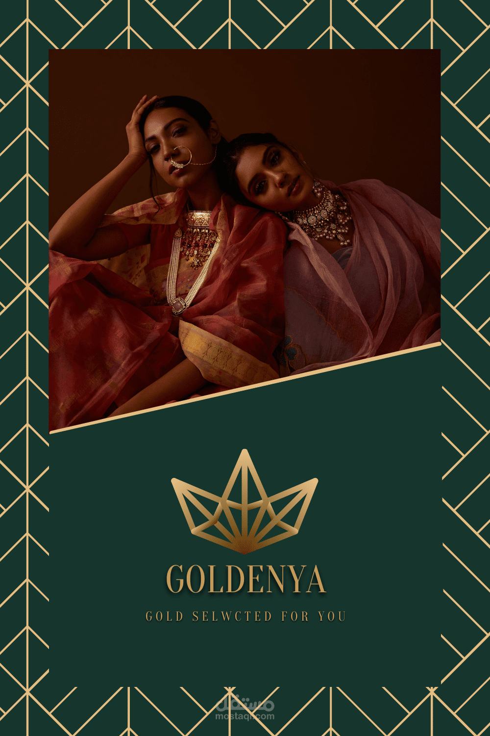 جولدينيا هو شعار مصمم لسلسلة محلات لبيع المجوهرات المُطعمة بالذهب الخالص في الخليج العربي تصاميم مستوحاه من الثقافة الهندية.