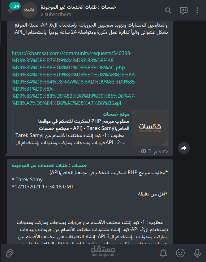 يقوم البوت بنشر اخر الطلبات ضمن موقع خمسات ضمن طلبات الخدمات الغير متوفرة للوصول لها بأسرع ما يمكن