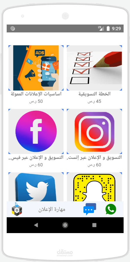 تطبيق مهارة لنظامي Android & IOS لتعلم مهارات التسويق الرقمي ( تطبيق + لوحة تحكم )