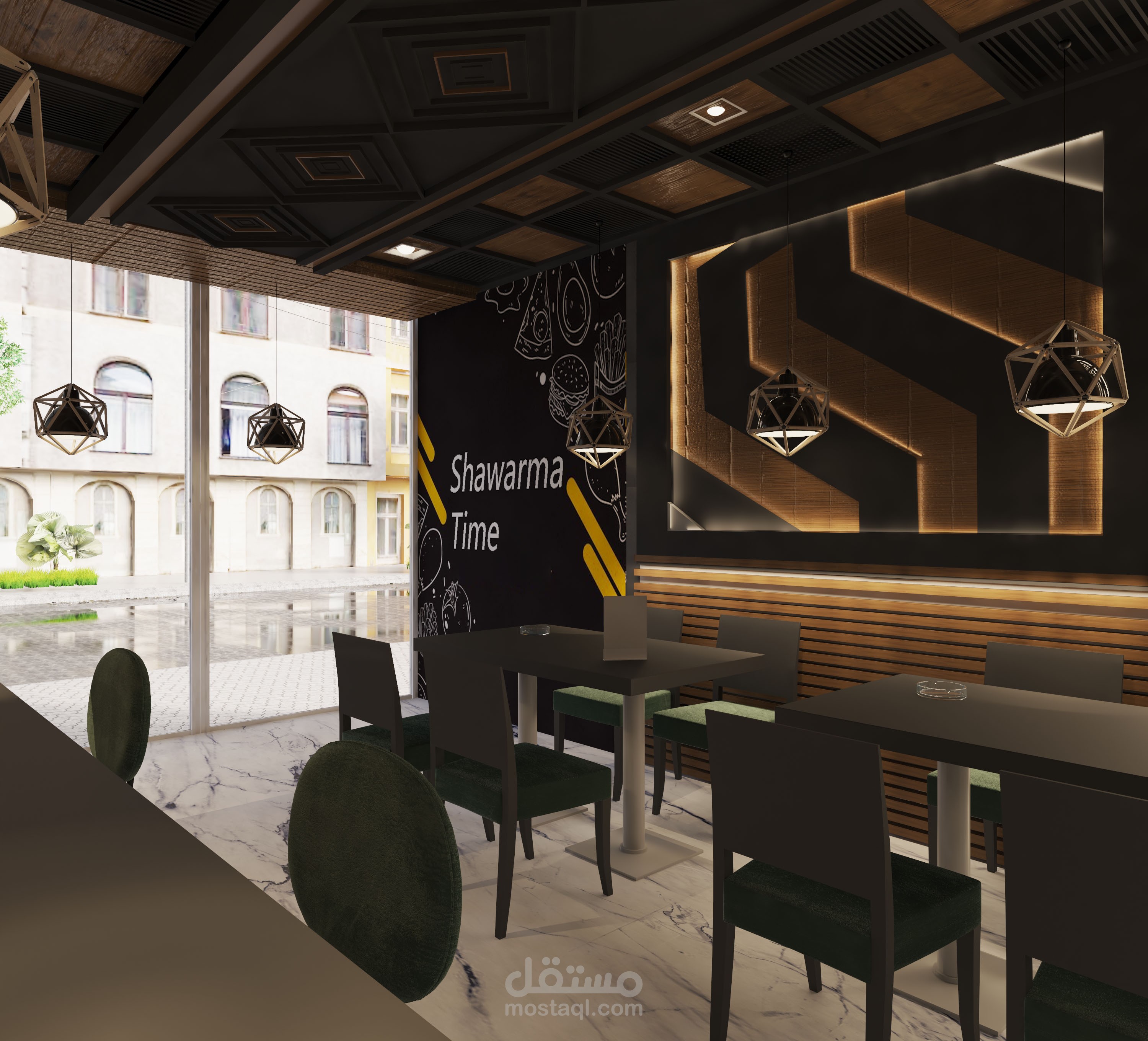 تصميم مطعم شاورما في مدينه المنصوره محافظه الدقهليه