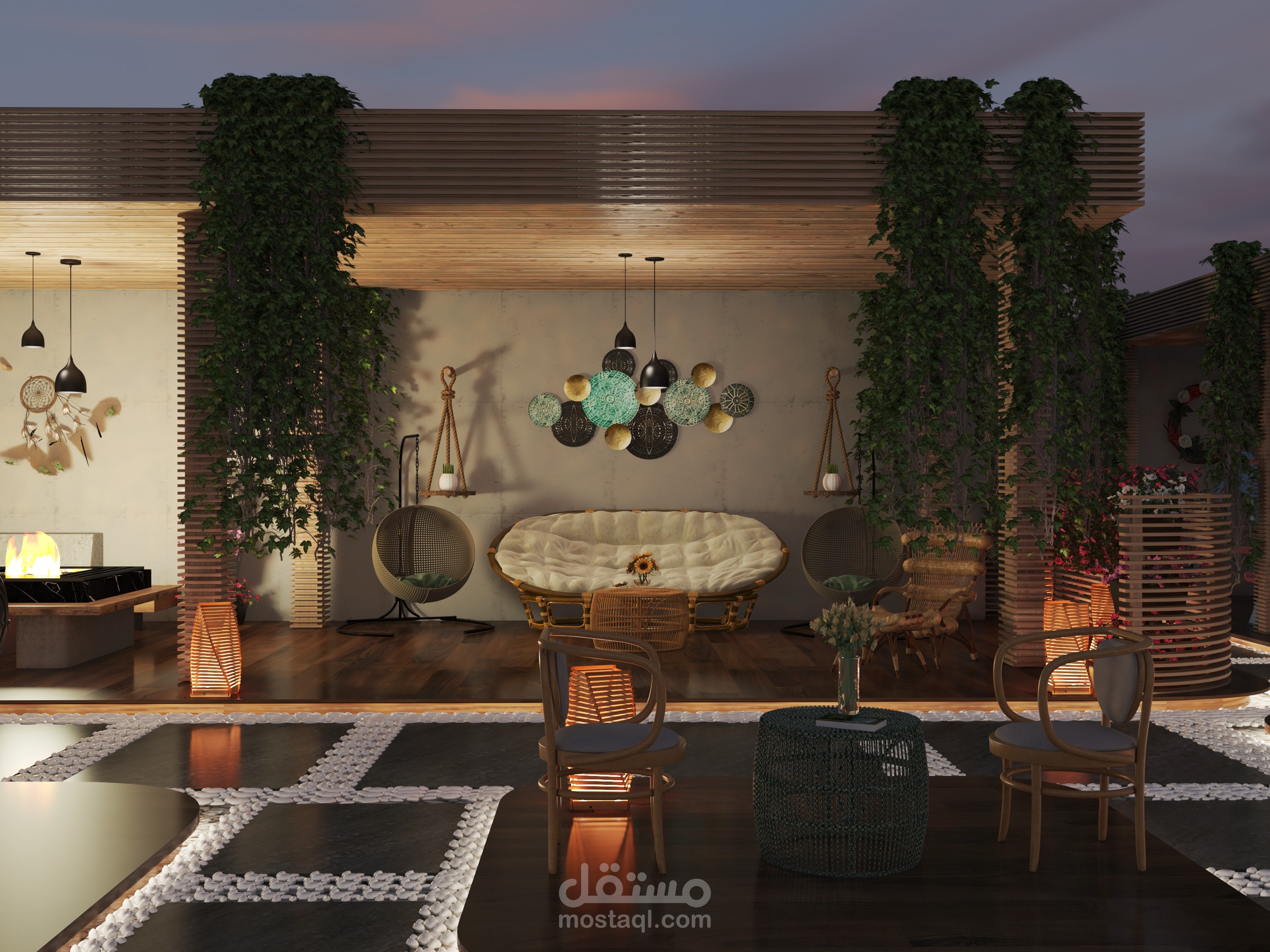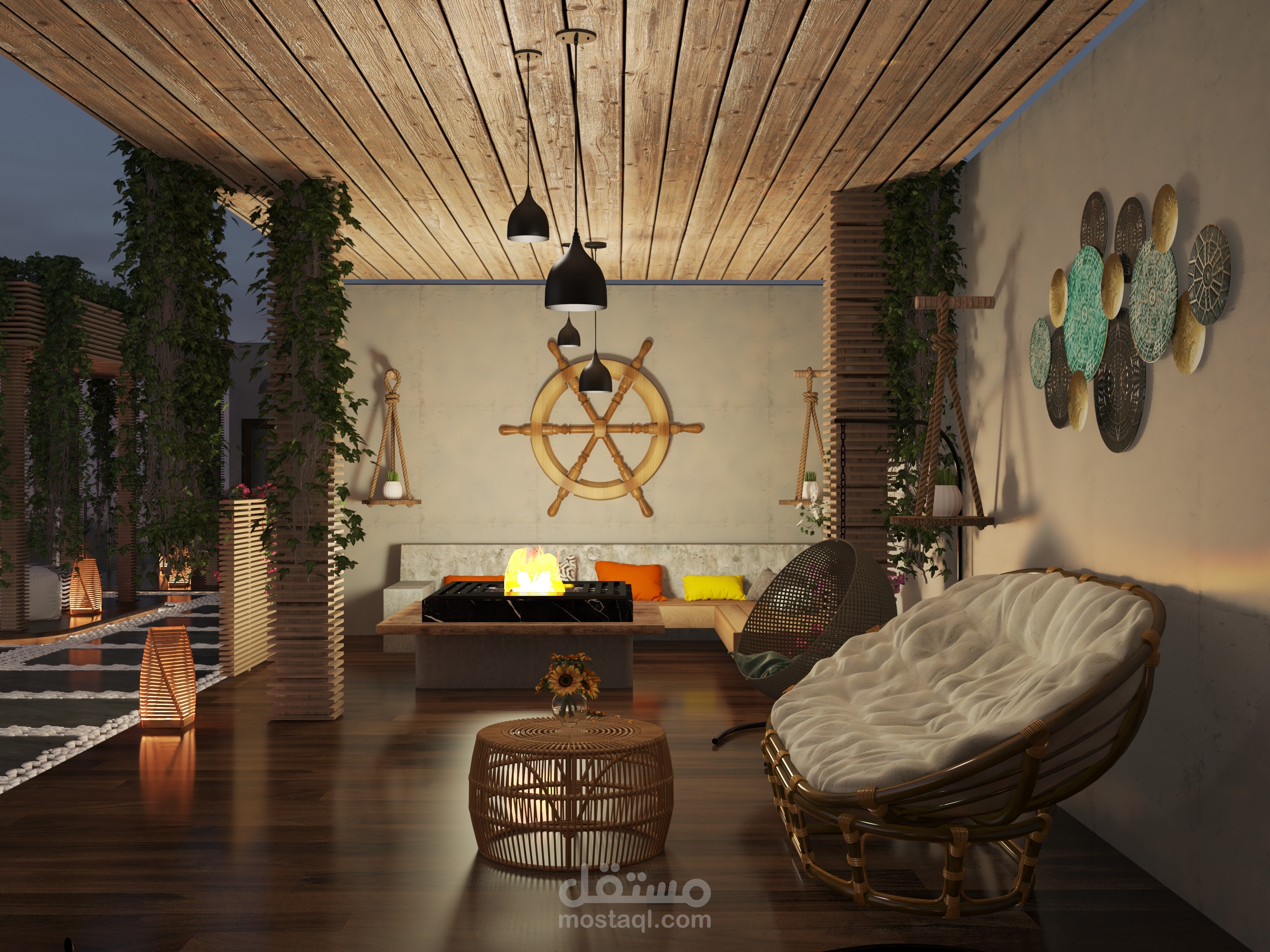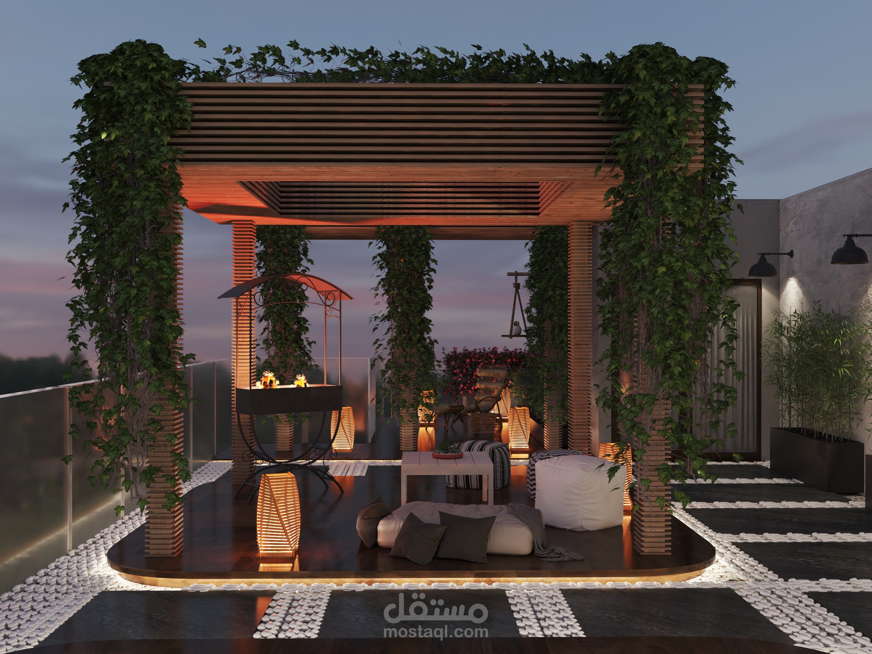 الروف يعتمد على تصميم دافى وهادىء وعلى اضائات خافتة