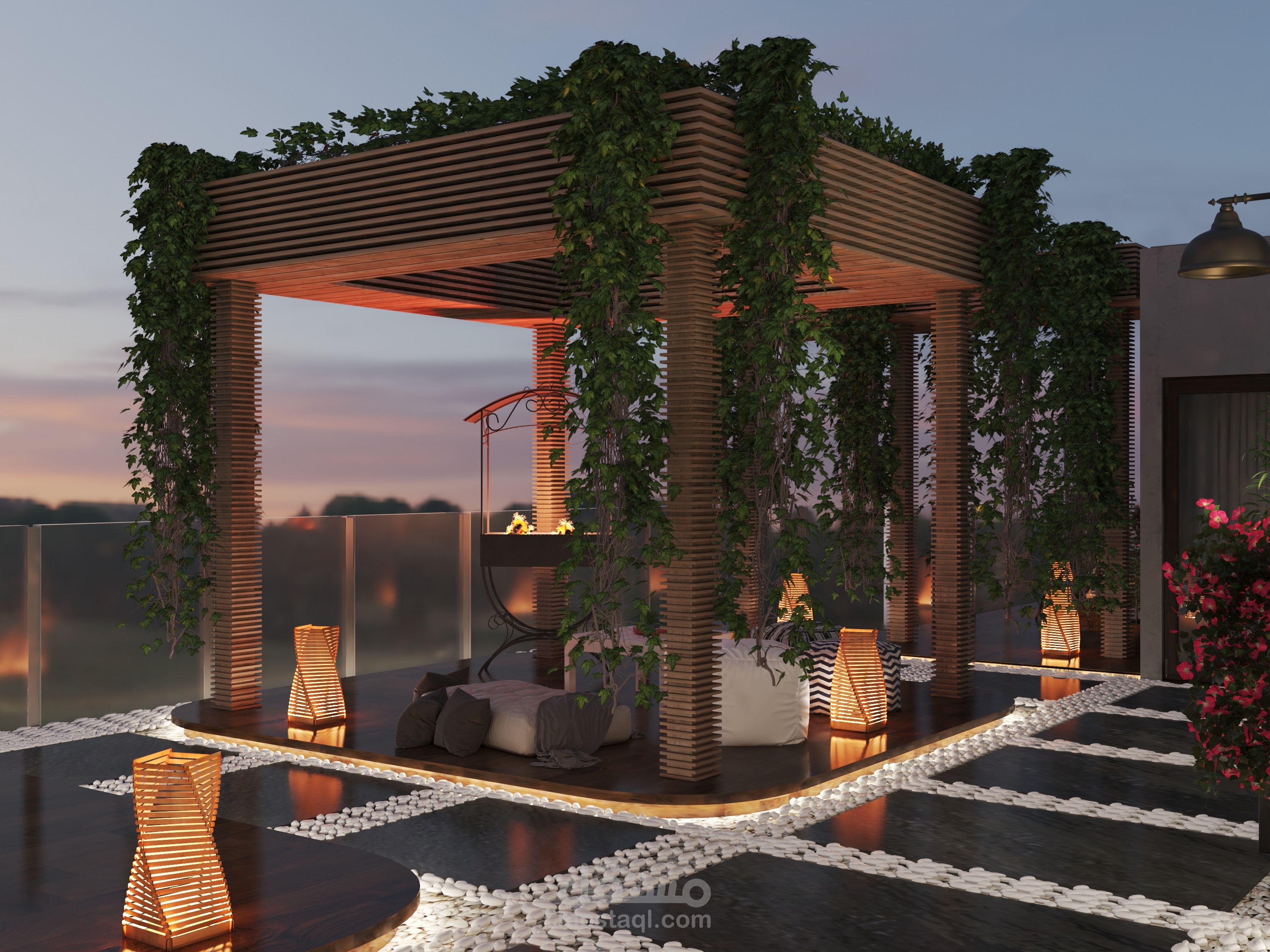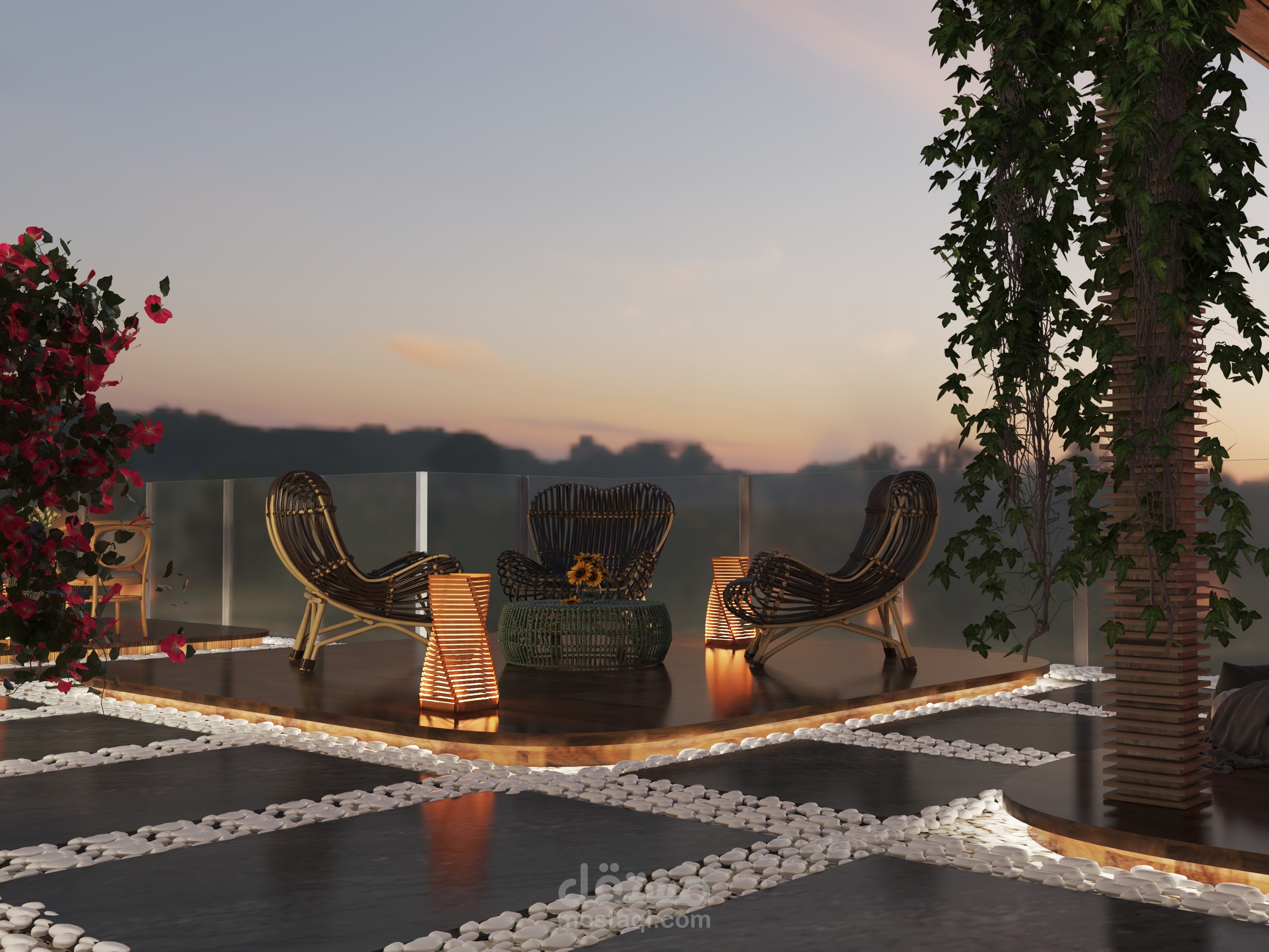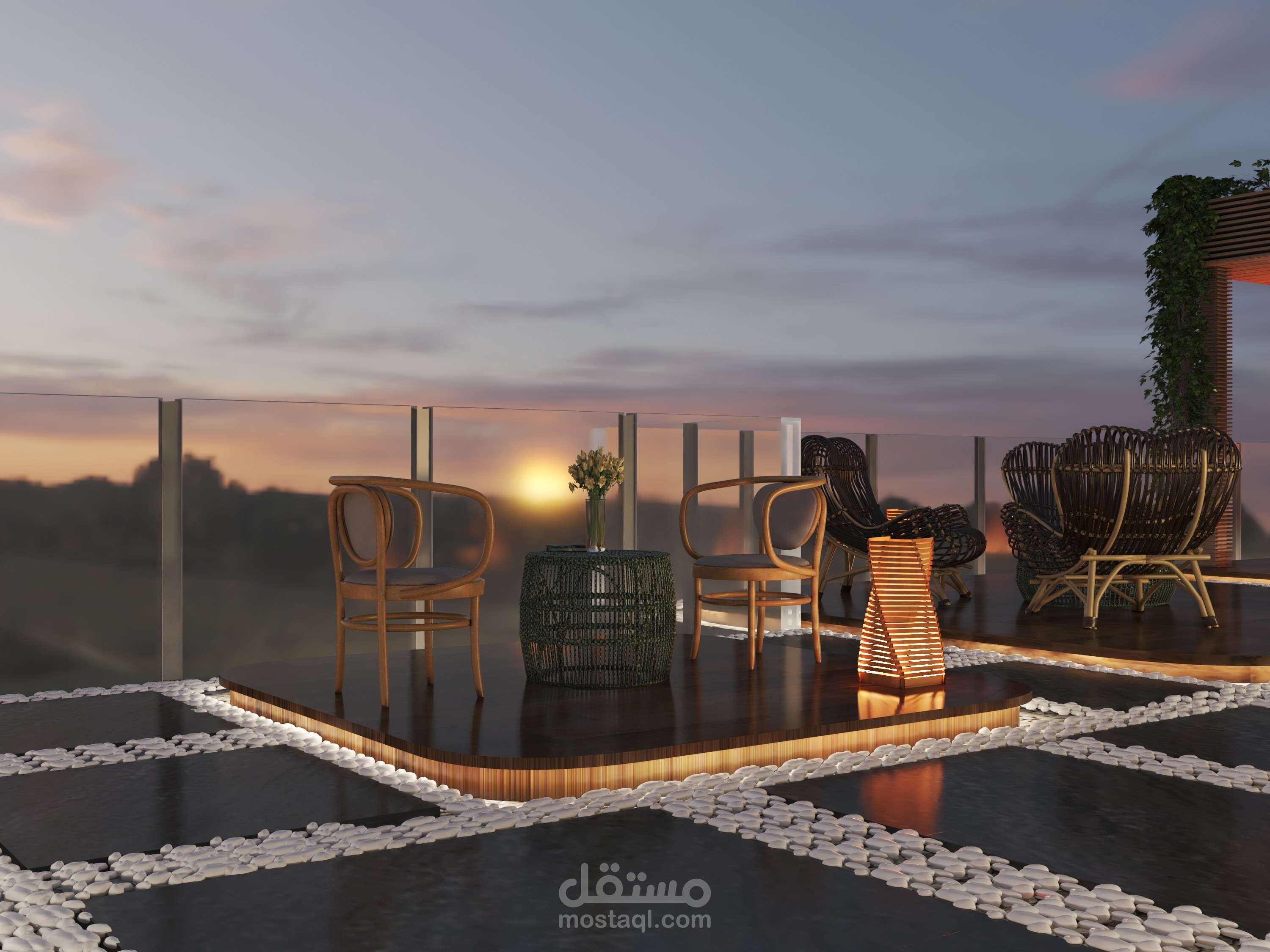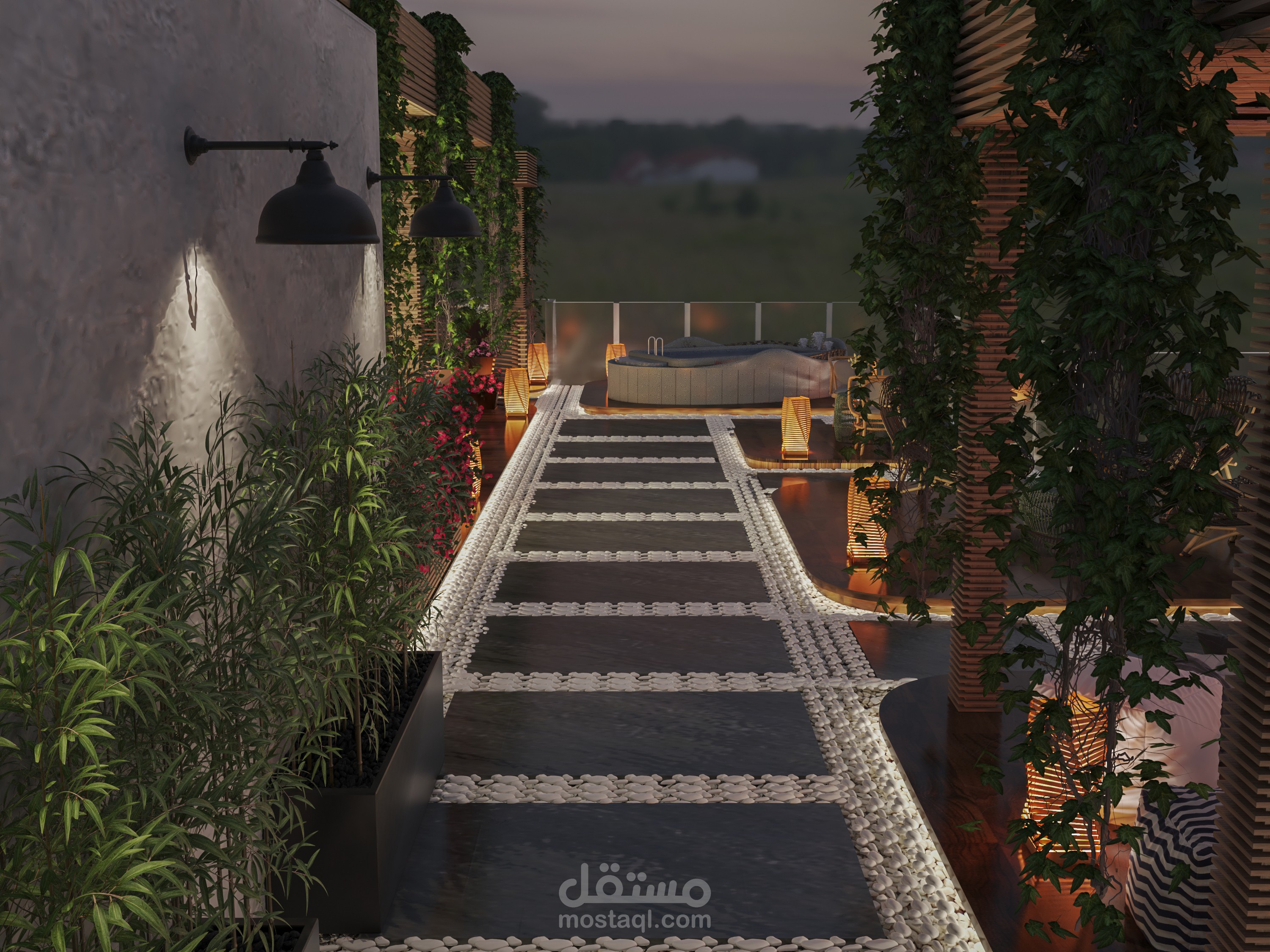 الروف يعتمد على تصميم دافى وهادىء وعلى اضائات خافتة