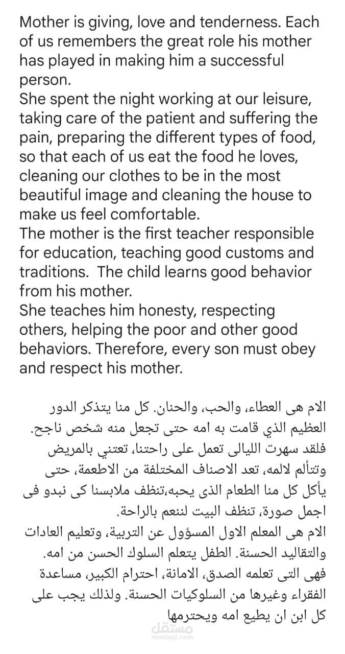 كتابة وترجمة قطعة صغيرة عربي / انجليزي