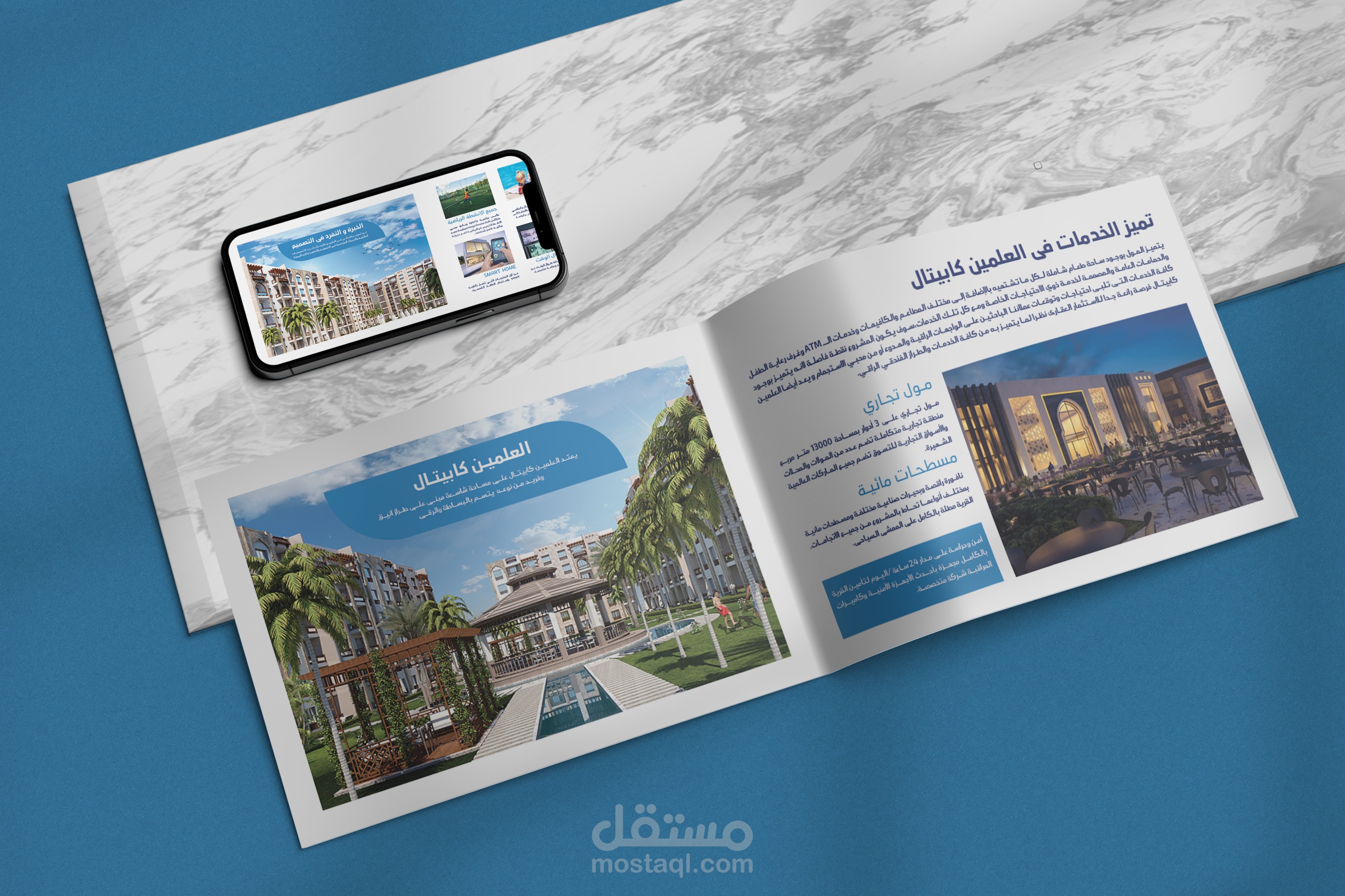 El Alamein Capital is a residential, touristic, and integrated complex with hotel services It suggests originality, sophistication, and calm. special. An Andalusian style that gives character All units overlook the swimming pools, green areas, and flats Aquatic and artificial lake for rest and recreation and a dancing fountain at the entrance The main complex of the complex, which suggests fascination and luxury.