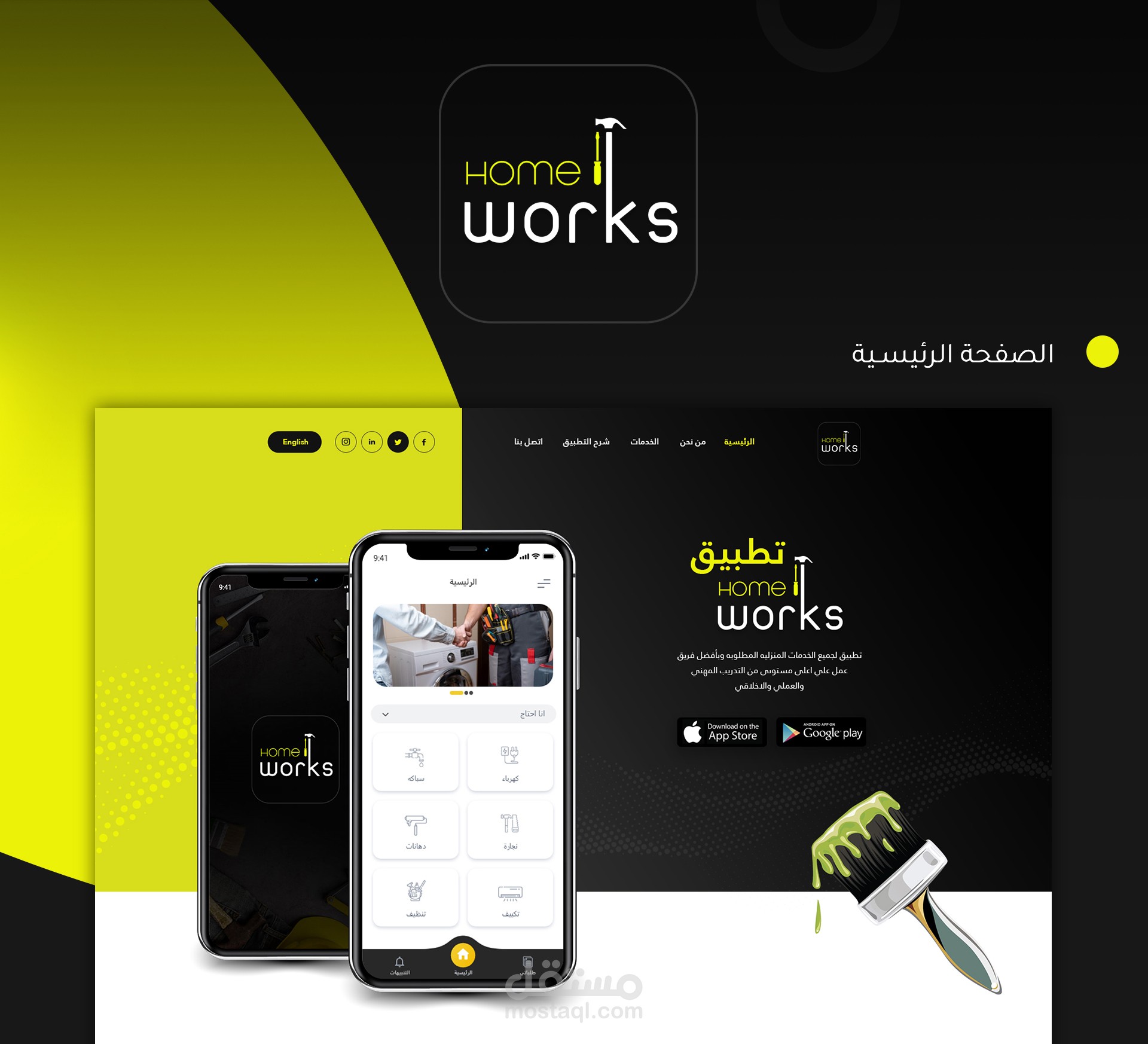 تطبيق Homeworks لتقديم الخدمات الخاصه بالصيانه المنزلية والوساطه بين الفنيين والعميل من خخلال التطبيق واكثر مايميز التطبيق سهوله التعامل وسهوله الاستخدام لليوزر والفني وانتقاء فنيين ععلى اعلى مستوى