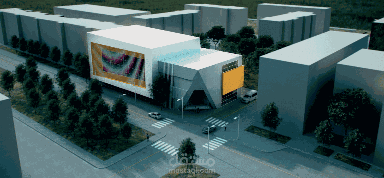 يدور هذا المشروع حول تصور ثلاثي الأبعاد لمبنى إداري في سياق حضري.