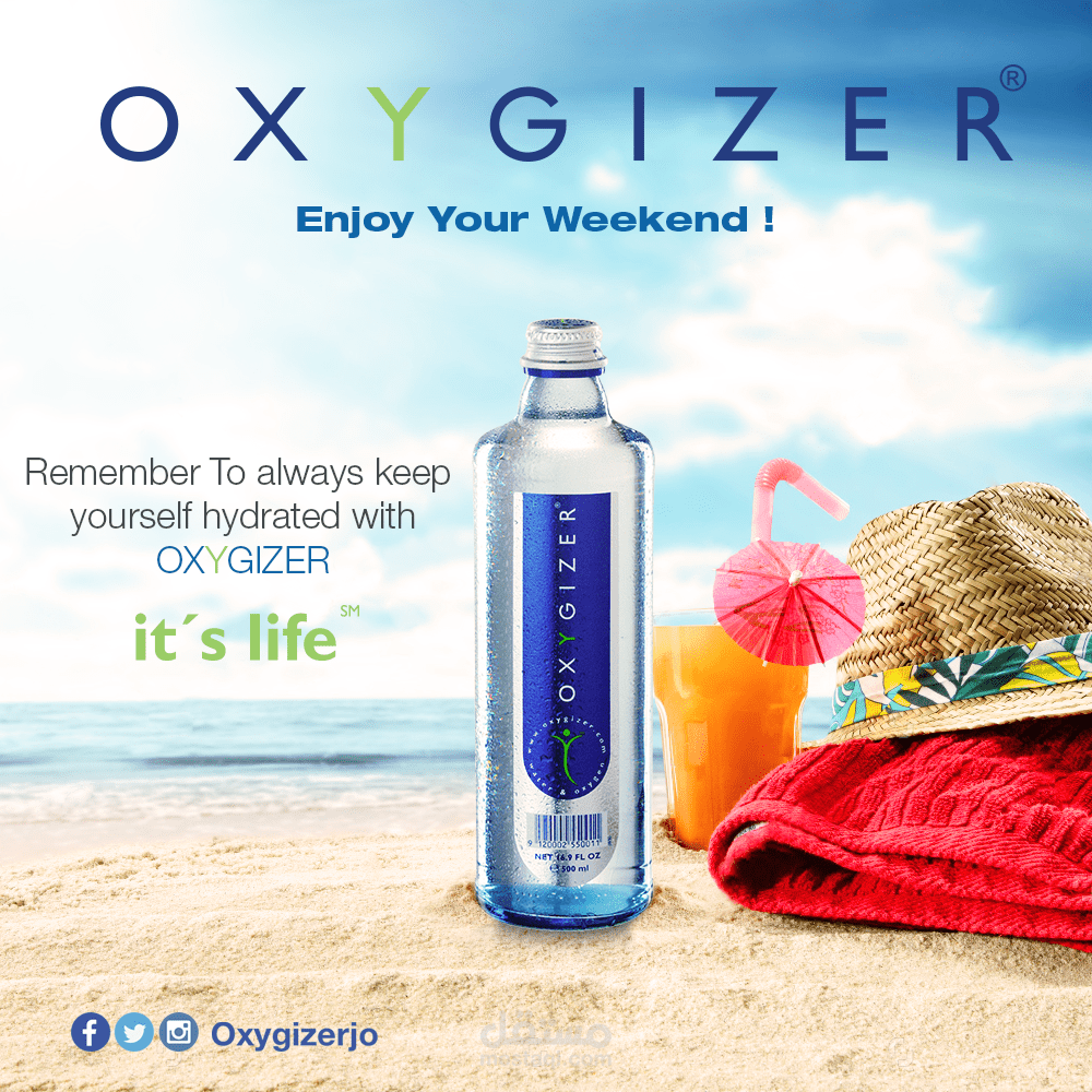 تصميم لإعلان مياه Oxygizer وهي عبارة عن حملة ترويجية لمياه ذات منشأ إيطالي. وقد تم تنفيذ هذه التصاميم للعرض على منصة الفيسبوك والإنستجرام.