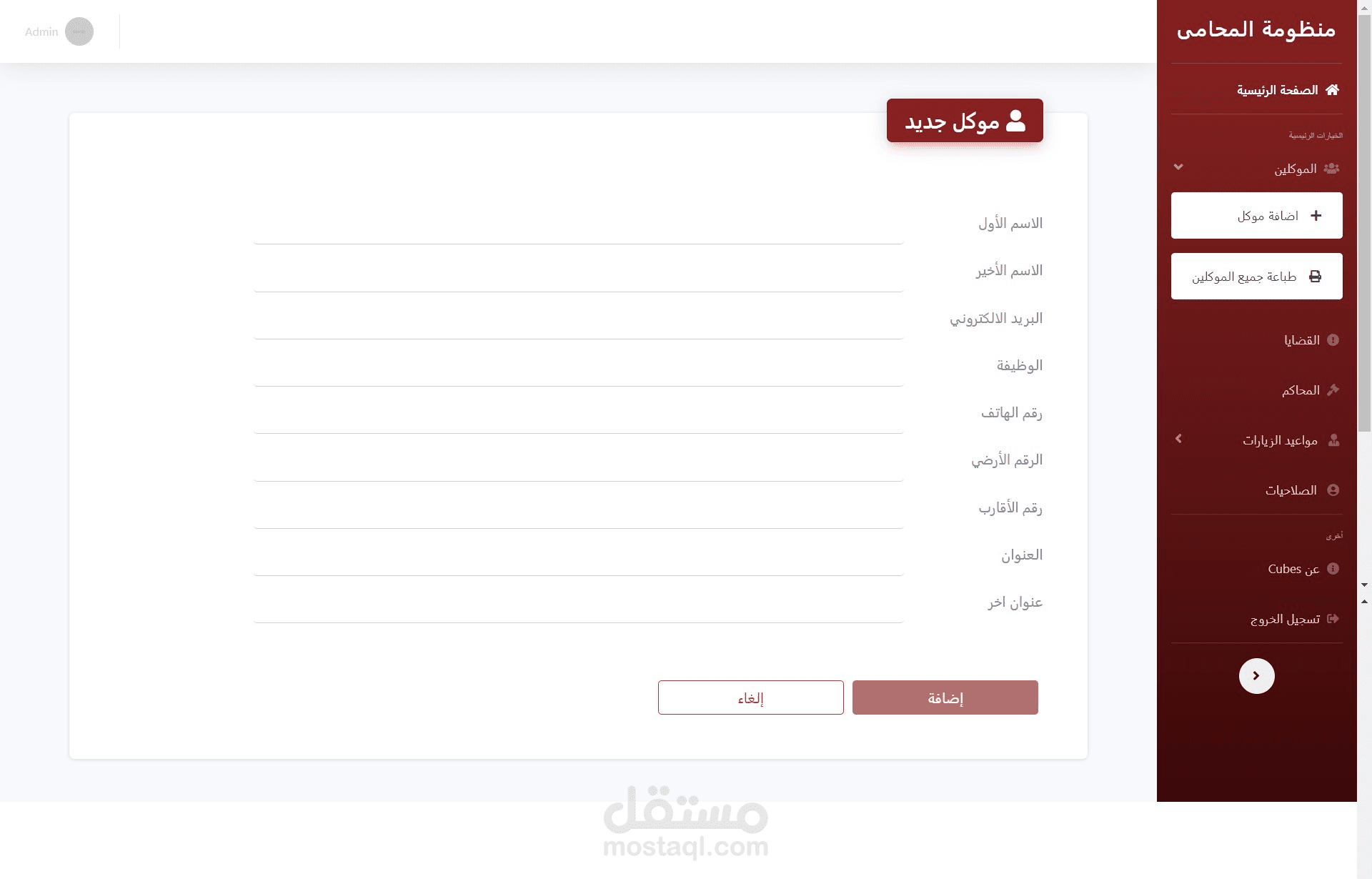 عبارة عن سيستيم اداري لشركة محاماة يقوم بتجيل الموظفين والعملاء والقضايا والمحاكم المختصة كما يقوم بتسجيل الجلسات التي تحدث بين المحامي والعميل.